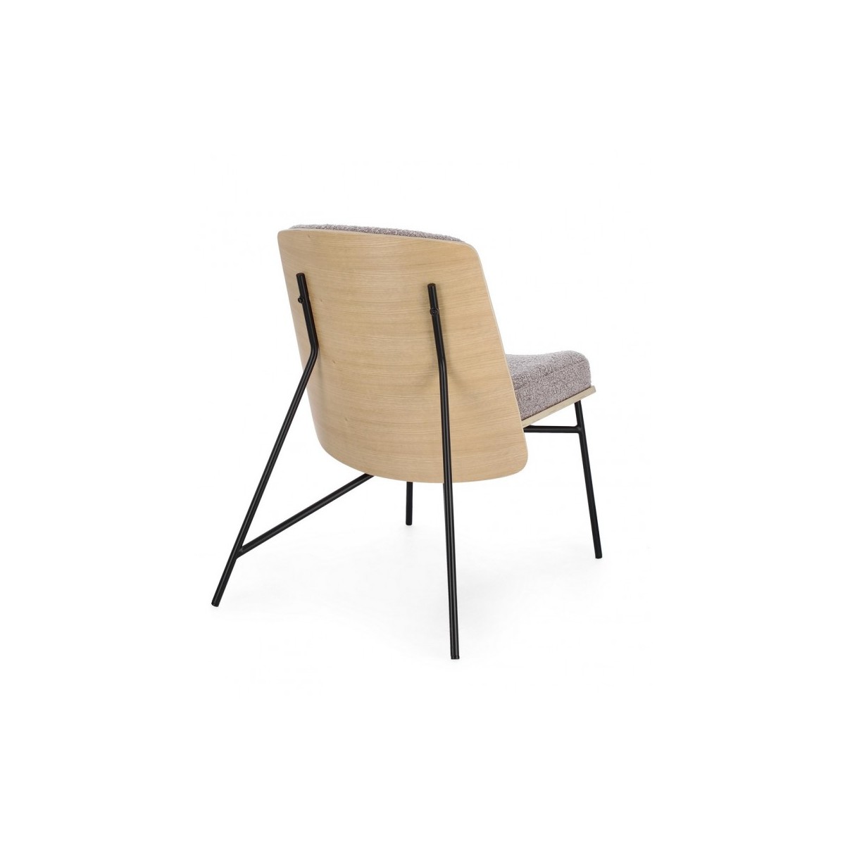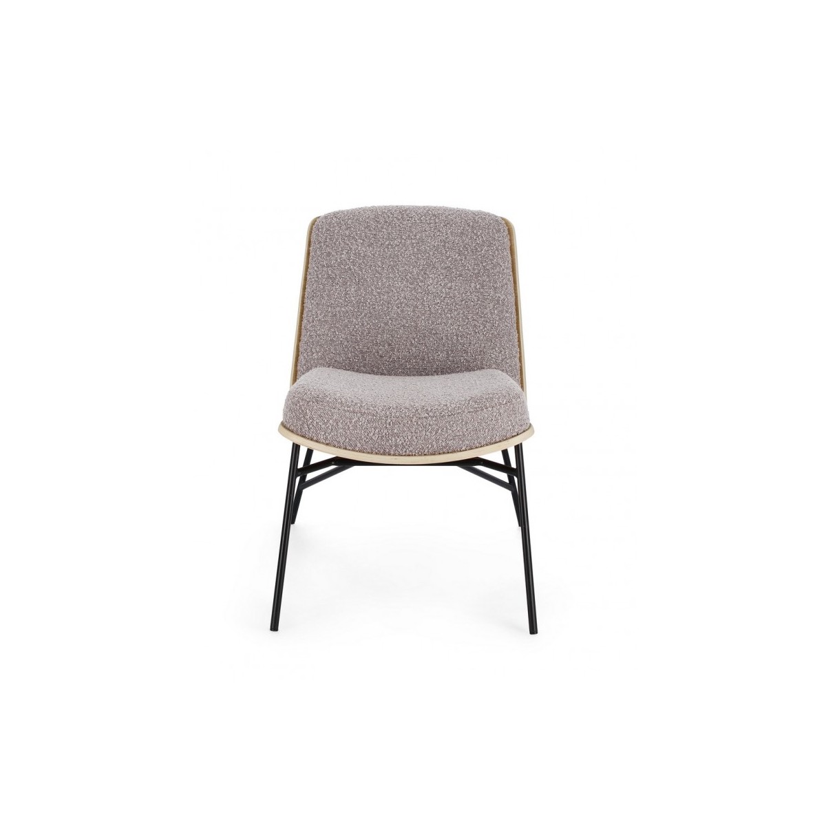STRUTTURA IN COMPENSATO. GAMBE IN ACCIAIO VERNICIATO A POLVERE. IMBOTTITURA IN SCHIUMA POLIURETANICA. RIVESTIMENTO IN 95% POLIESTERE 5% ACRILICO EFFETTO BOUCLE' . GAMBE DA ASSEMBLARE.