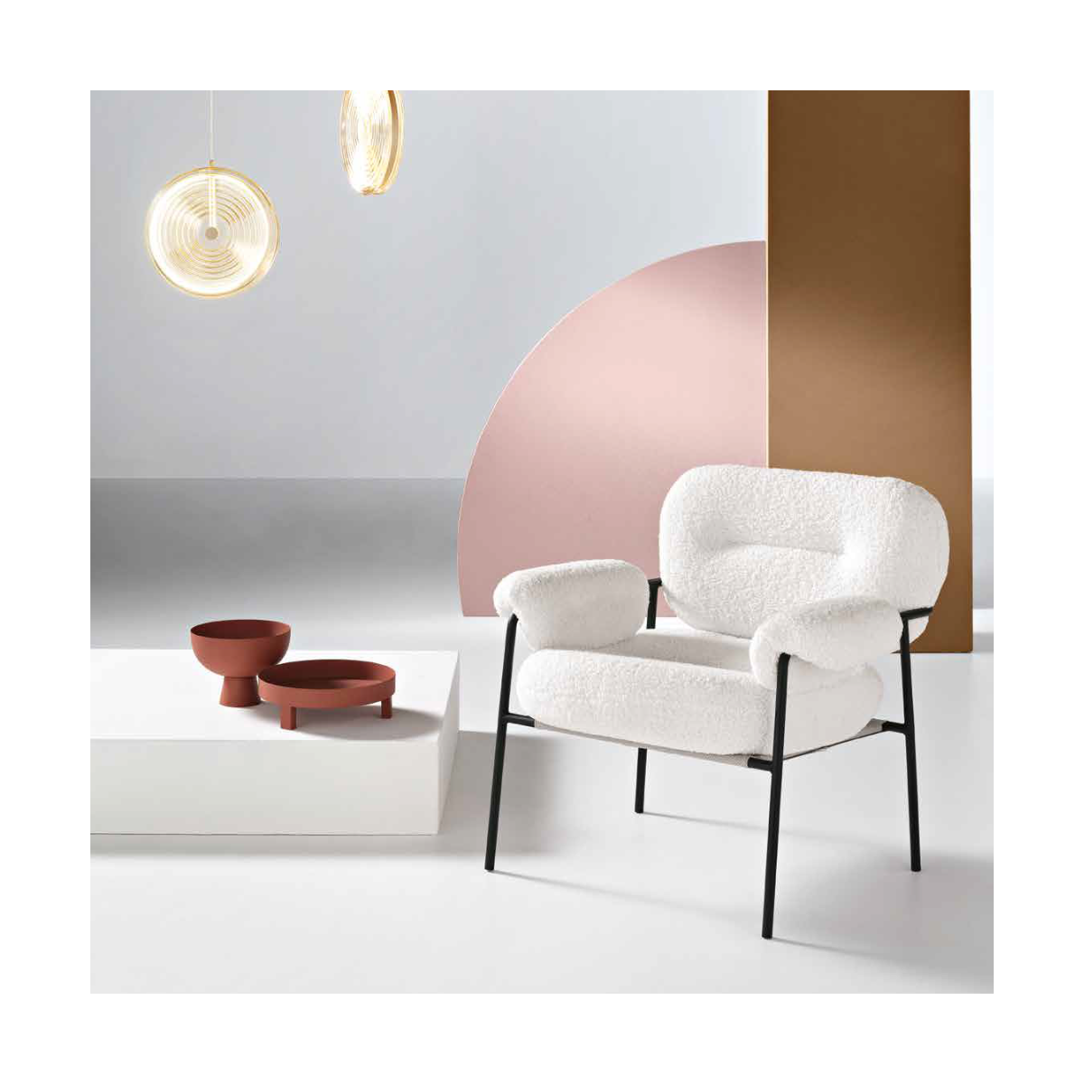 Poltrona KENT in tessuto bouclè con struttura in metallo.