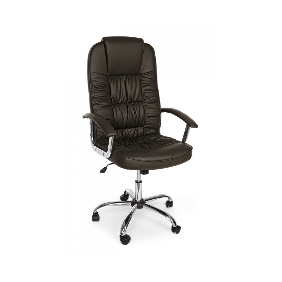 BASE IN ACCIAIO CROMATO Ø60CM. RUOTE IN NYLON. SEDUTA E SCHIENALE IMBOTTITI IN SCHIUMA POLIURETANICA E RIVESTITI IN SIMILPELLE. BRACCIOLI IN ACCIAIO CROMATO CON RIVESTIMENTO IN SIMILPELLE. ALTEZZA REGOLABILE. DA ASSEMBLARE