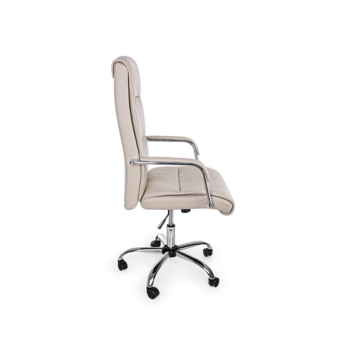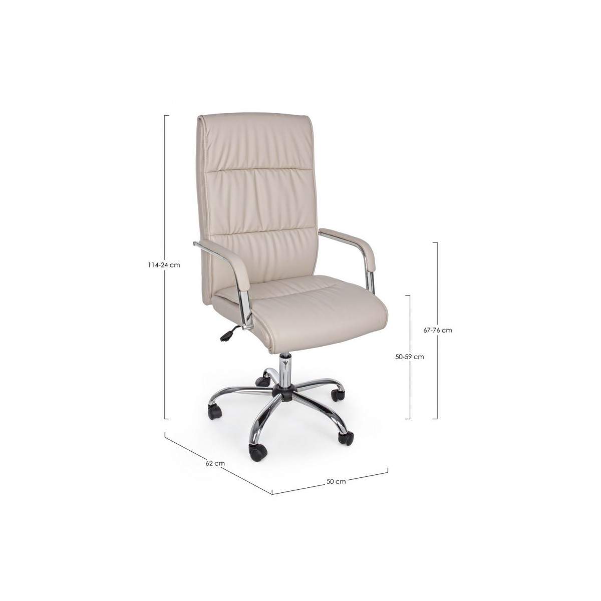 BASE IN ACCIAIO CROMATO Ø60 CM. RUOTE IN NYLON. SEDUTA E SCHIENALE IMBOTTITI E RIVESTITI IN SIMILPELLE. BRACCIOLI IN ACCIAIO CROMATO CON RIVESTIMENTO IN SIMILPELLE. ALTEZZA REGOLABILE.DA ASSEMBLARE