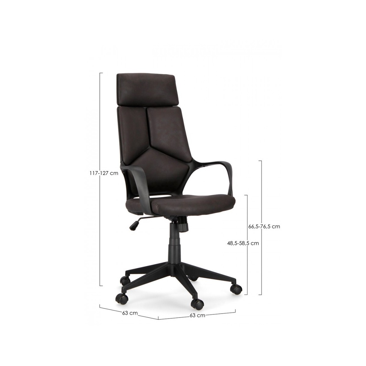 BASE IN NYLON Ø65 CM. RUOTE IN PU. IMBOTTITURA IN SCHIUMA POLIURETANICA DENSITA' 24 KG/M3. RIVESTIMENTO IN TESSUTO 100% POLIESTERE. SCOCCA E BRACCIOLI IN PLASTICA (PP). MECCANISMO BUTTERFLY: REGOLAZIONE ALTEZZA E OSCILLAZIONE SEDUTA. CAPACITA' MAX DI CARICO: 120 KG. DA ASSEMBLARE.