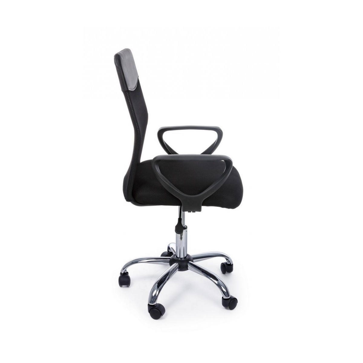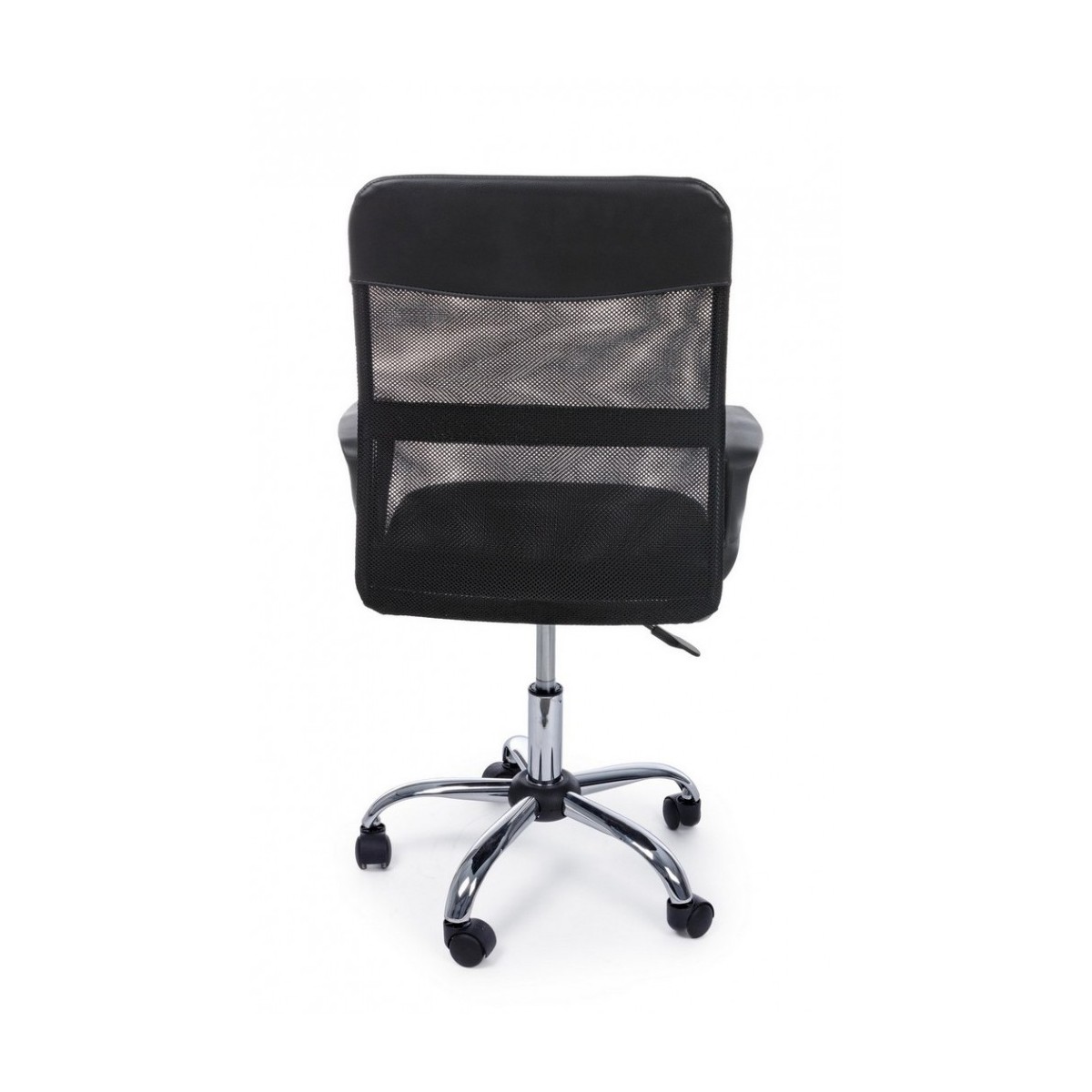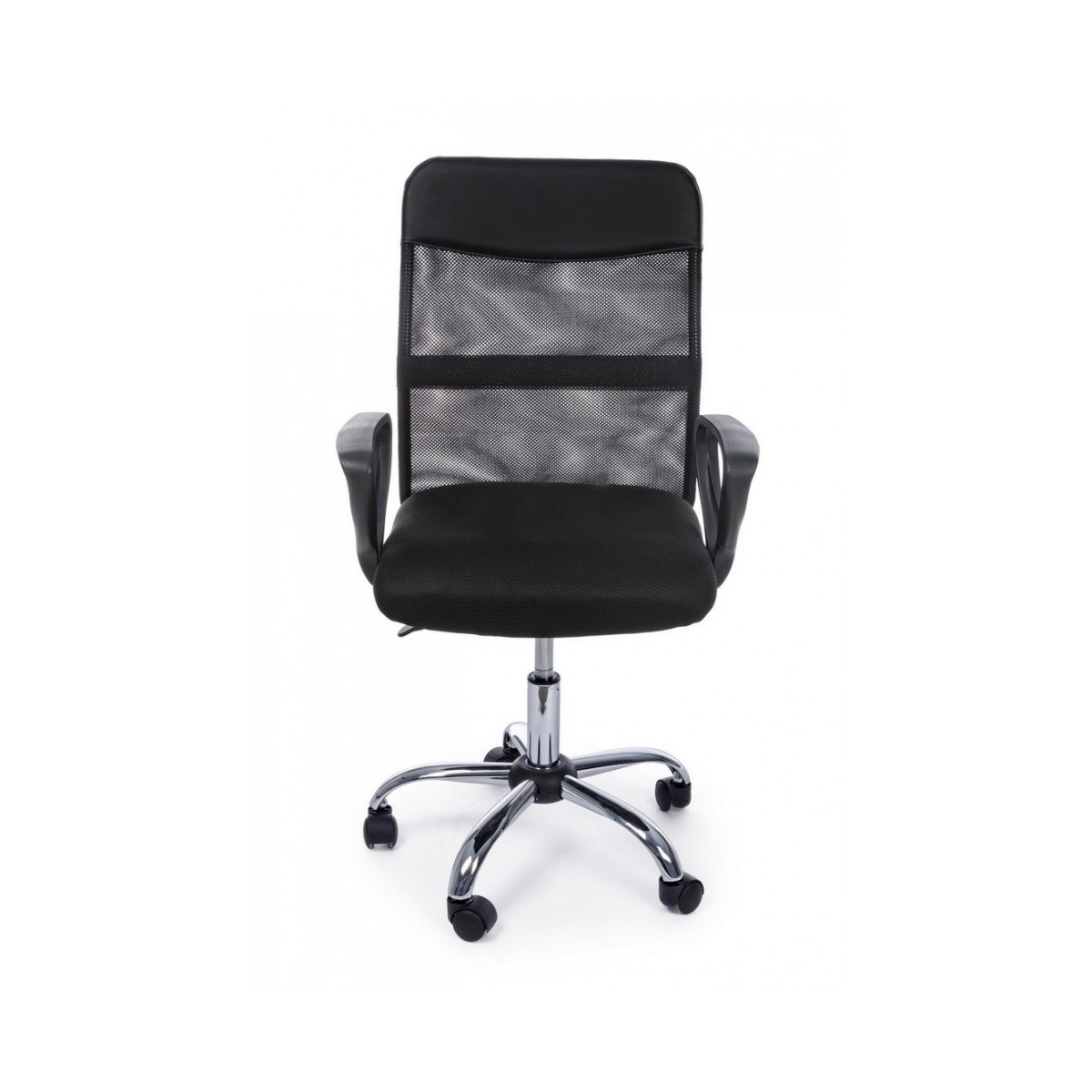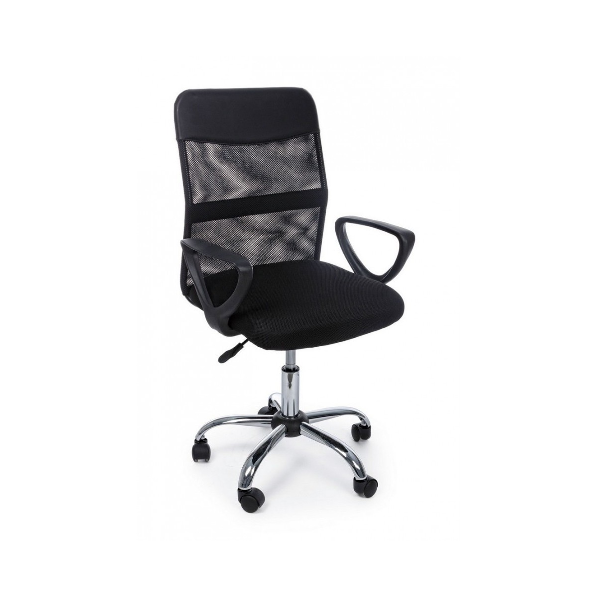 BASE IN ACCIAIO CROMATO Ø53CM. RUOTE IN NYLON. SEDUTA IMBOTTITA E RIVESTITA IN TESSUTO 100% POLIESTERE. SCHIENALE RIVESTITO IN TESSUTO A RETE 100% POLIESTERE CON INSERTO IN SIMILPELLE. BRACCIOLI IN PLASTICA (PP). ALTEZZA REGOLABILE. DA ASSEMBLARE