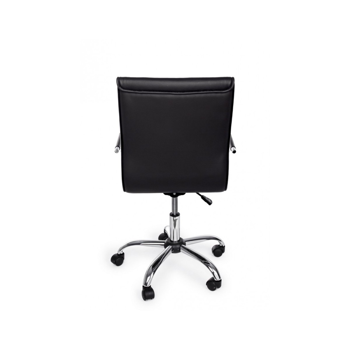 BASE IN ACCIAIO CROMATO Ø56 CM. RUOTE IN NYLON. SEDUTA E SCHIENALE IMBOTTITI E RIVESTITI IN SIMILPELLE. BRACCIOLI IN ACCIAIO CROMATO CON RIVESTIMENTO IN SIMILPELLE. ALTEZZA REGOLABILE. DA ASSEMBLARE