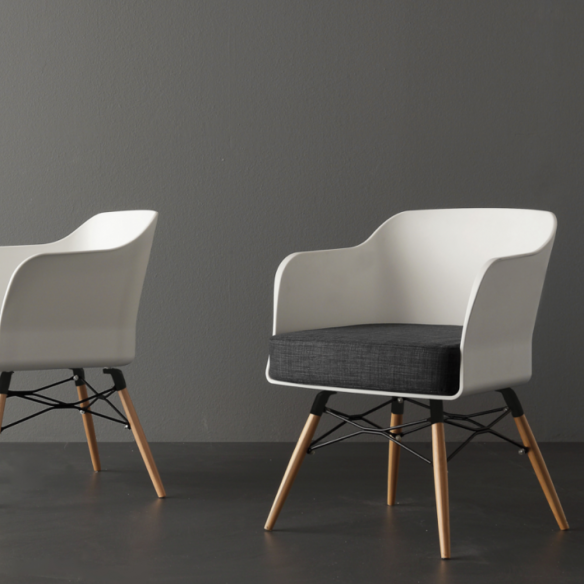 La struttura si distingue per le gambe in massello di faggio tinto naturale, che conferiscono solidità e un tocco caldo e accogliente. La scocca in polipropilene bianco, dal design ergonomico, offre un ottimo supporto, mentre il cuscino in cotone color antracite assicura un comfort superiore, rendendo questa seduta perfetta per un utilizzo prolungato.