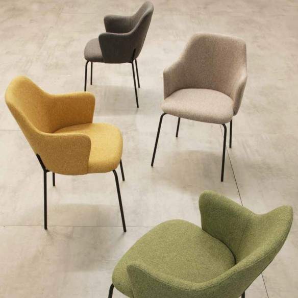 Poltroncina PENELOPE con struttura metallo verniciato nero e seduta tessuto antimacchia.