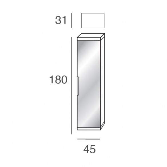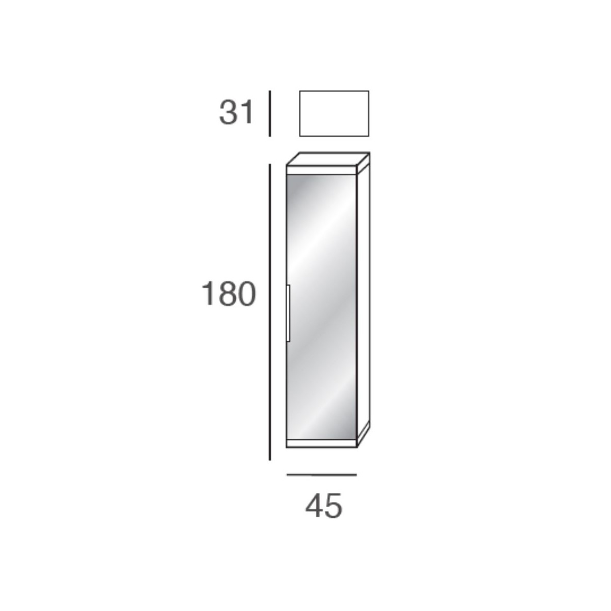 Le dimensioni compatte di altezza 180 cm, larghezza 45 cm e profondità 31 cm lo rendono perfetto anche per ingressi stretti o ambienti con spazio limitato, sfruttando al massimo lo spazio verticale senza ingombri.