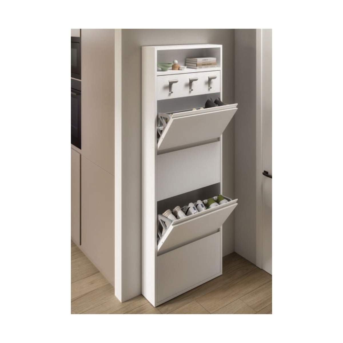 La scarpiera HOPLÀ ART.951 è la soluzione perfetta per chi cerca massima capacità e organizzazione senza rinunciare allo stile.