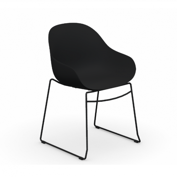 Academy è la poltroncina must-have per chi desidera comfort e stile in un unica seduta. Realizzata in polipropilene riciclato in sette varianti di colori si combina ad una struttura in tondino metallico a slitta.