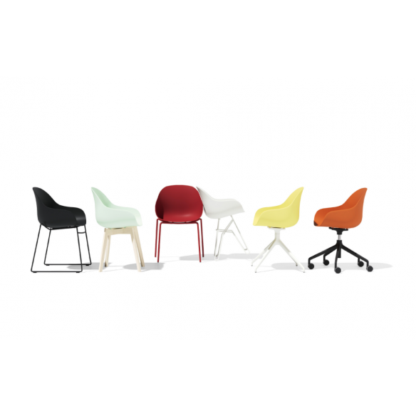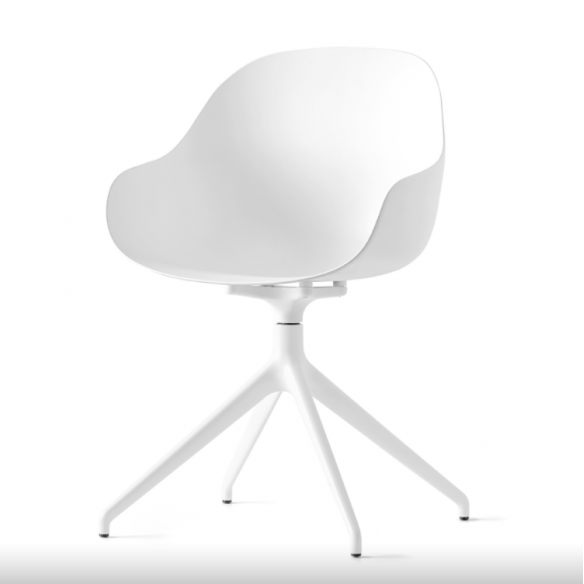 Academy è la poltroncina must-have per chi desidera comfort e ordine. Realizzata in polipropilene riciclato in sette varianti di colori si combina ad un basamento centrale girevole in alluminio con meccanismo di ritorno a 180°.