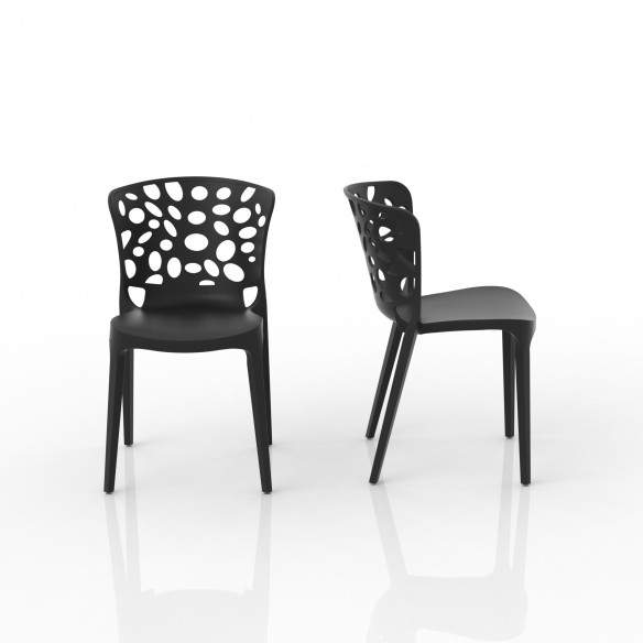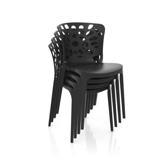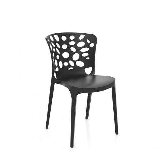 La sedia Amber dallo stile moderno ed esclusivo, dona un tocco di eleganza e vivacità sia al chiuso che all'aperto. Presenta un design dalle forme organiche e fluide, i fori sullo schienale filtrano la luce creando affascinanti giochi di ombre.