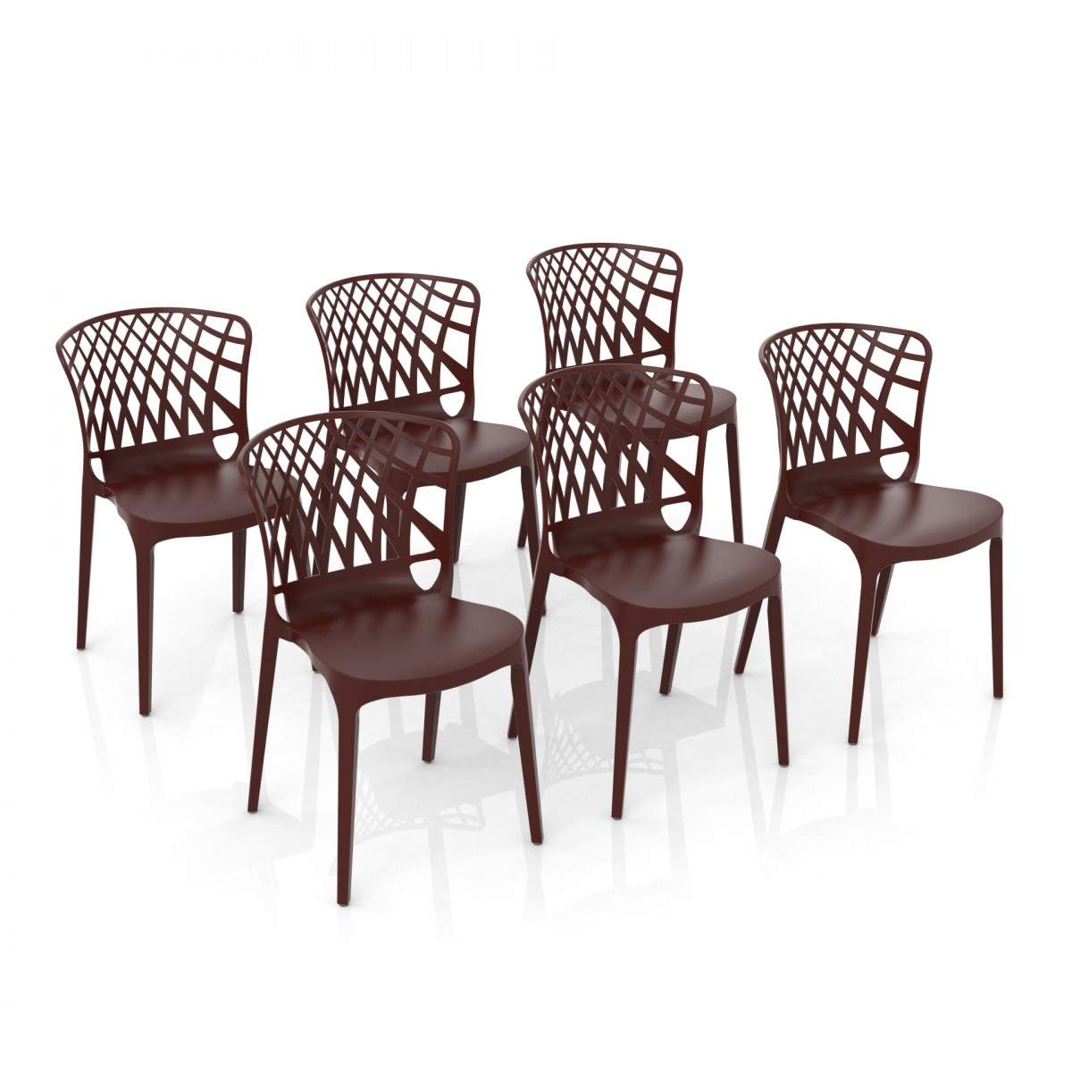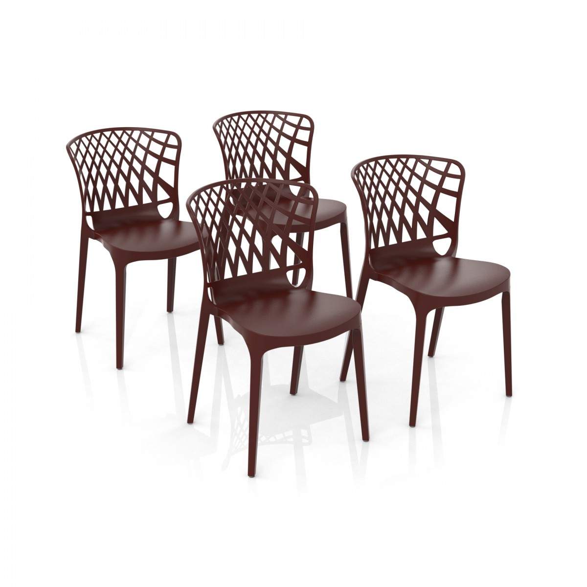 Materiale: Polipropilene, che conferisce leggerezza e resistenza, rendendo la sedia adatta sia per uso interno che esterno.