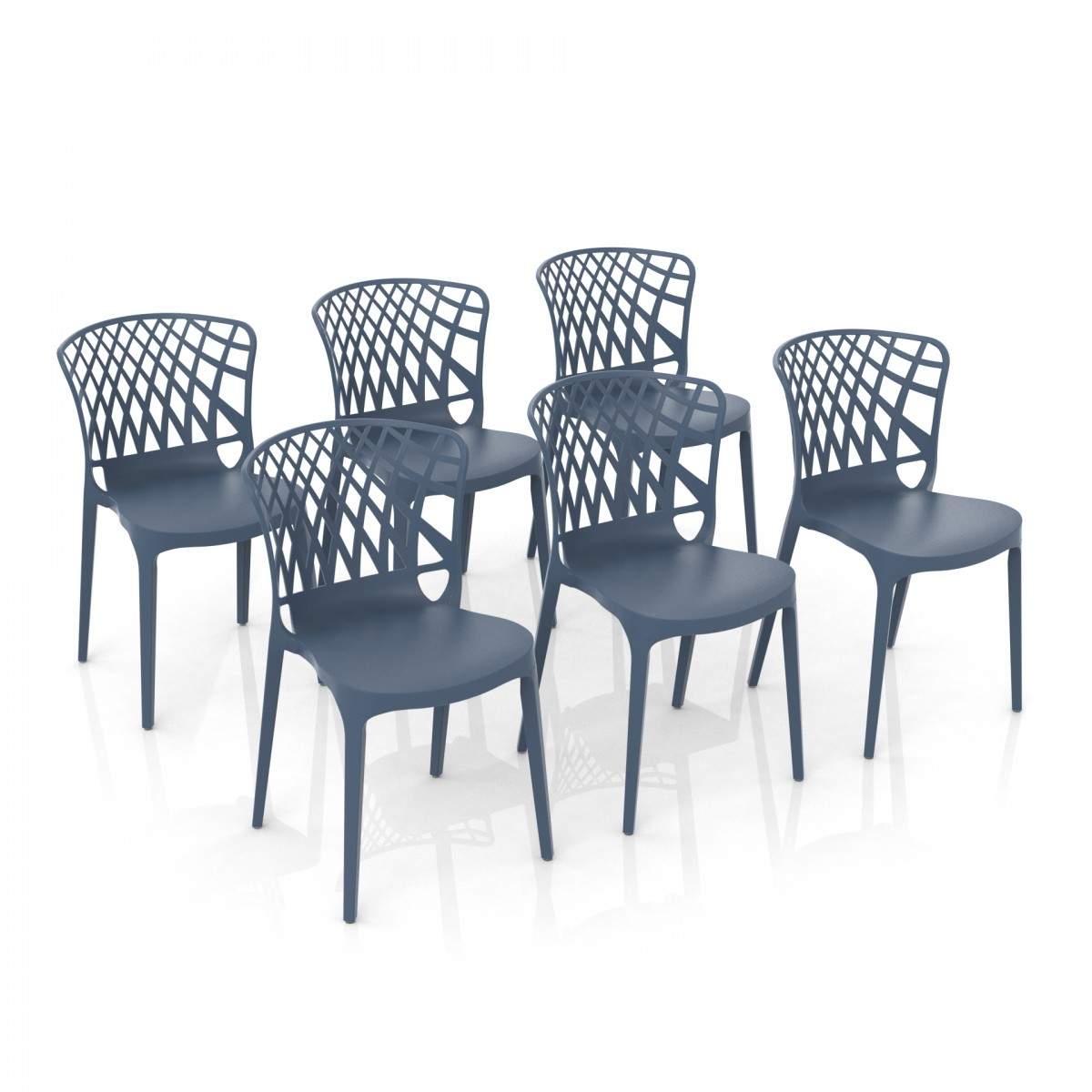 Materiale: Polipropilene, che conferisce leggerezza e resistenza, rendendo la sedia adatta sia per uso interno che esterno.