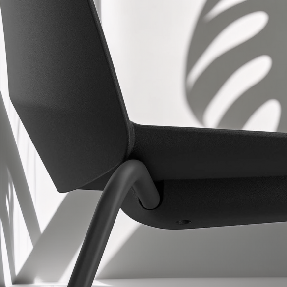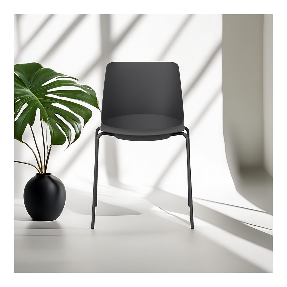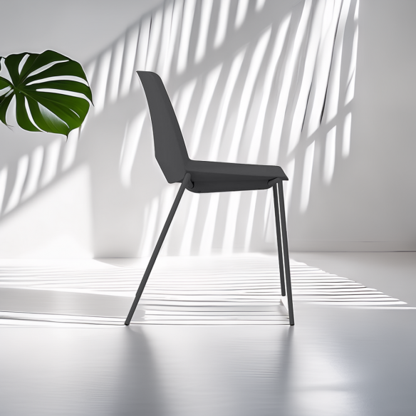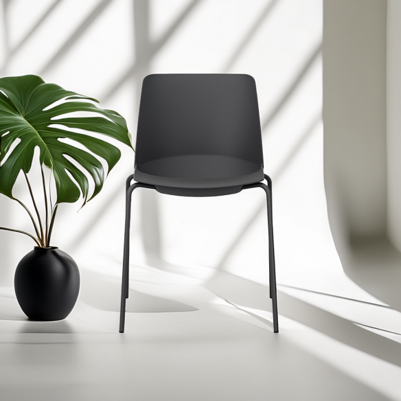 La sedia è impilabile fino a 8 unità, una caratteristica che la rende ideale per ottimizzare gli spazi quando non in uso.