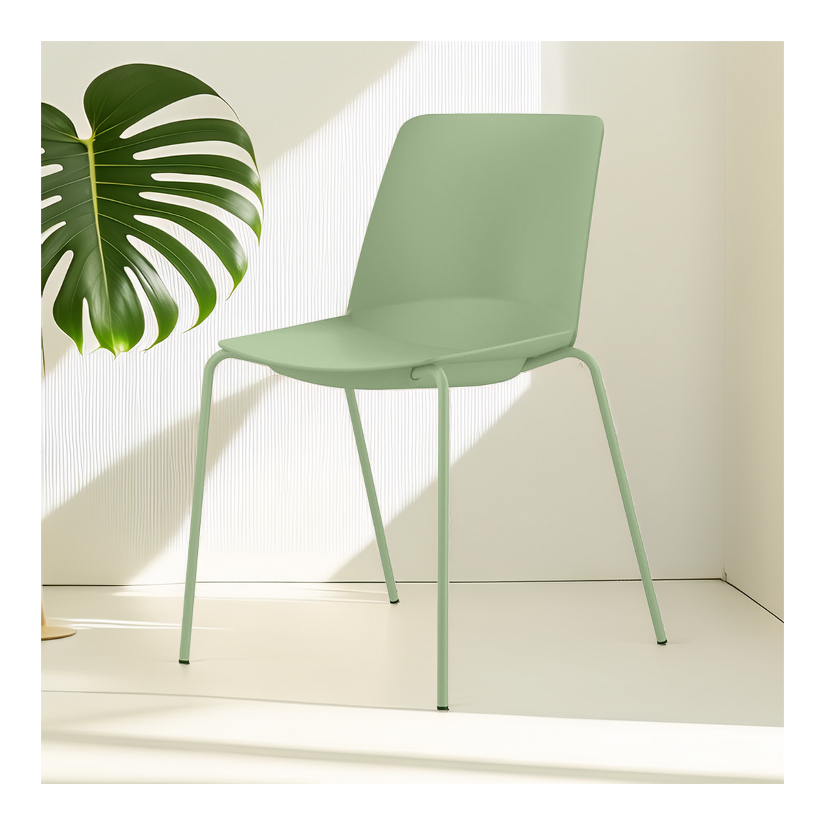 La sedia è impilabile fino a 8 unità, una caratteristica che la rende ideale per ottimizzare gli spazi quando non in uso.