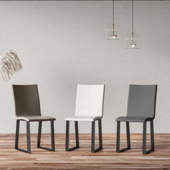 La scocca in legno rivestita in similpelle, leggermente imbottita, offre una seduta accogliente e piacevole, ideale per chi cerca il massimo della comodità senza rinunciare allo stile. Disponibile in tre eleganti colorazioni, la similpelle è morbida al tatto, resistente all’usura e facilissima da pulire: basta un semplice panno umido per mantenerla sempre impeccabile.