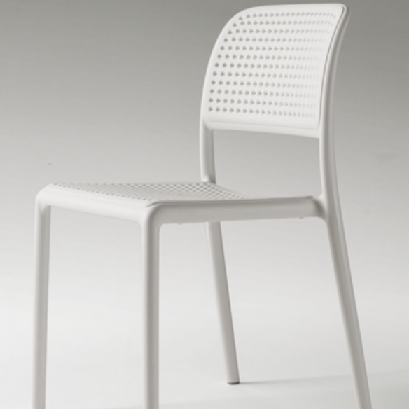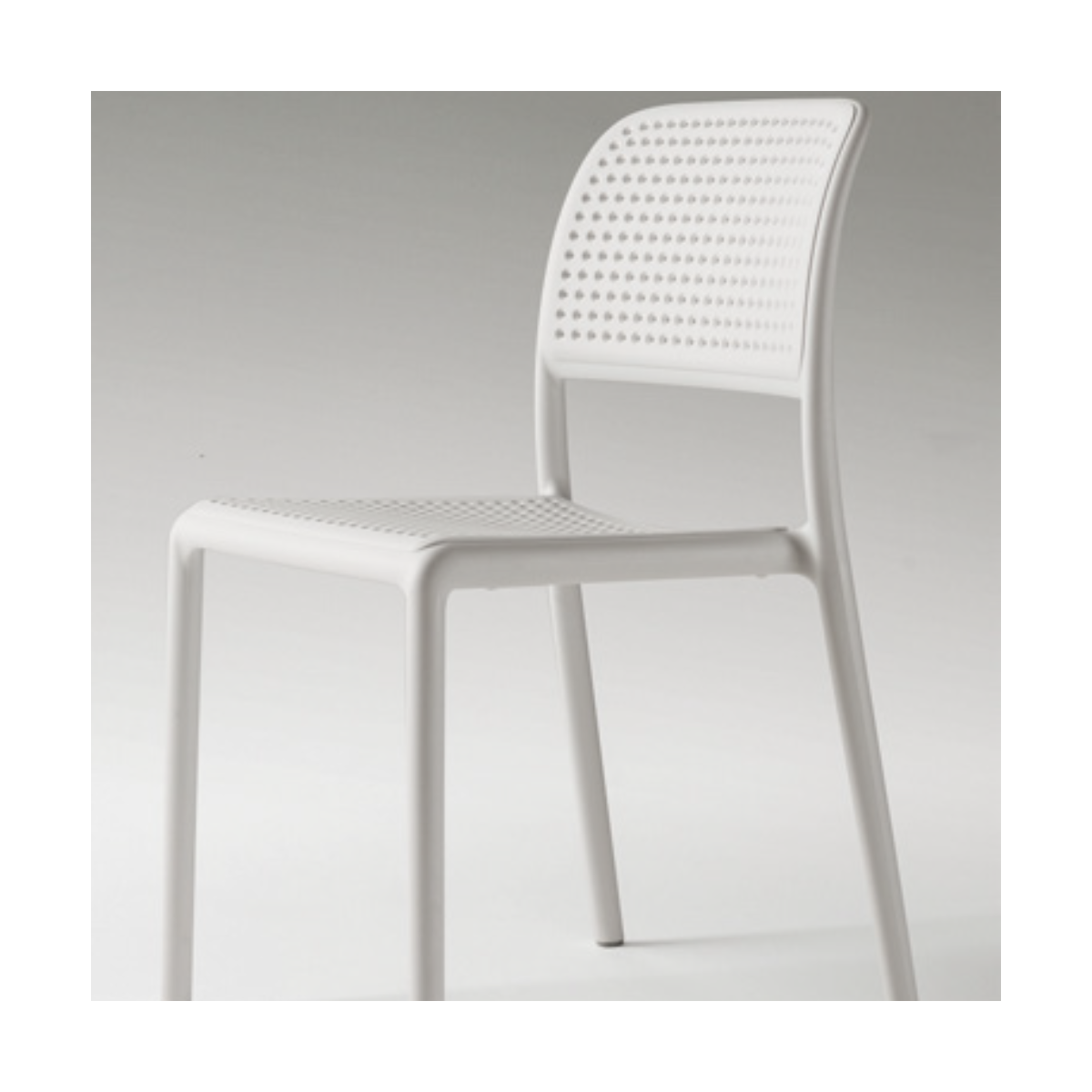 Sedia BORA realizzata interamente in polipropilene, con seduta e schienale forellato e disponibile in diverse colorazioni.