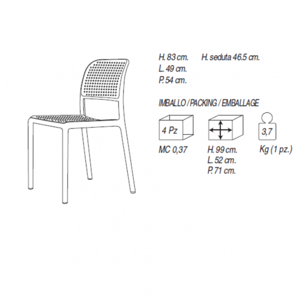 Interamente realizzata in polipropilene di alta qualità, BORA è resistente, stabile e facilissima da pulire. Questa sedia è progettata per durare nel tempo e per accompagnarti in ogni momento della giornata, senza timore di usura o agenti atmosferici. Proprio per questo è perfetta sia per gli spazi interni, come cucine e sale da pranzo, sia per gli spazi esterni, come terrazzi, balconi o giardini. Il polipropilene è infatti un materiale impermeabile, che non teme pioggia e umidità, ideale anche per dehors di bar e locali.