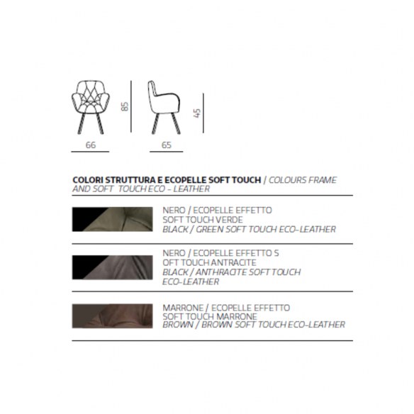 Sedia con struttura in metallo verniciato e seduta ecopelle effetto soft touch.