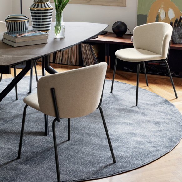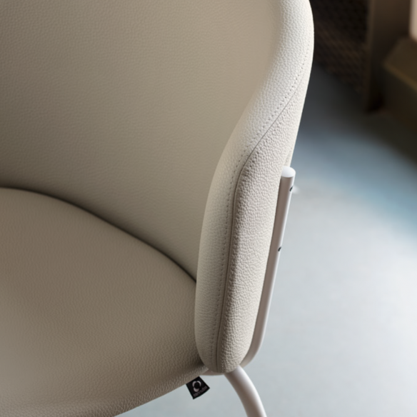 La struttura in metallo verniciato garantisce una base solida e durevole, mentre il sedile imbottito, accogliente e ben rifinito, offre un comfort ottimale anche nelle sedute prolungate. Disponibile in due tipologie di rivestimento – Harry e Rain – entrambe pensate per unire estetica e praticità, con texture piacevoli al tatto e resistenti all’uso quotidiano.