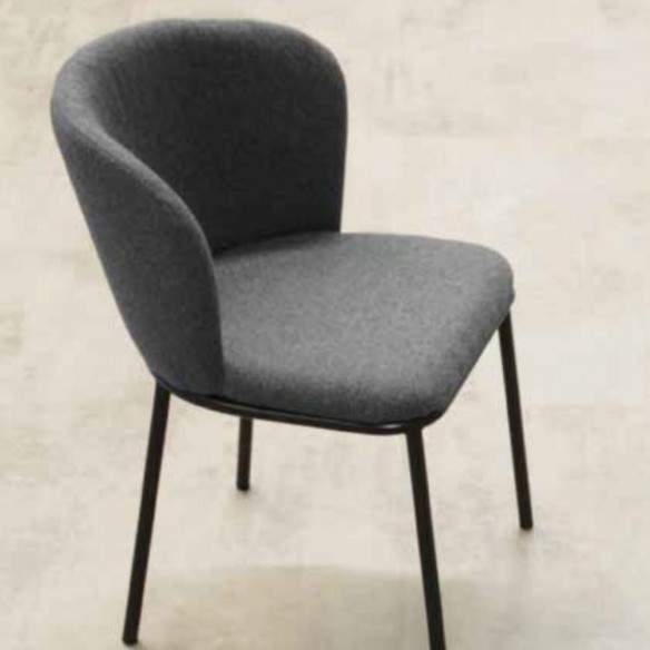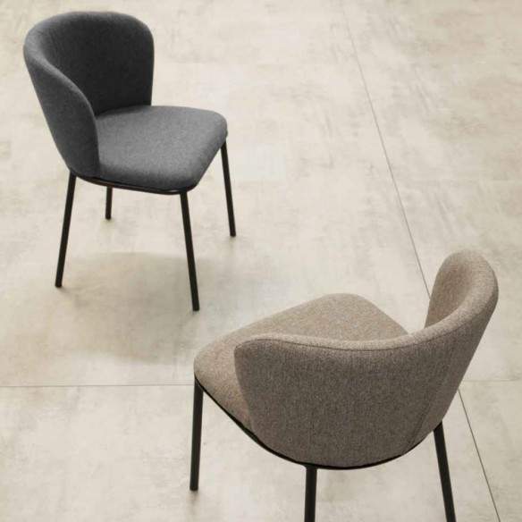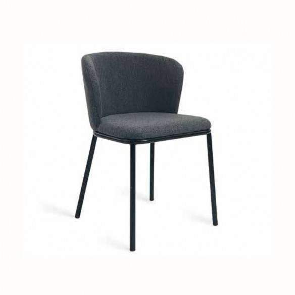 La sedia FRIDA con struttura in metallo verniciata nera e seduta in tessuto antimacchia.