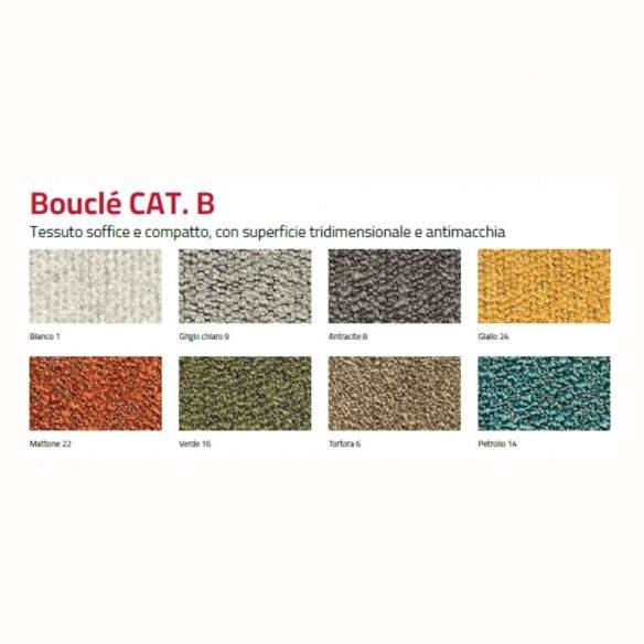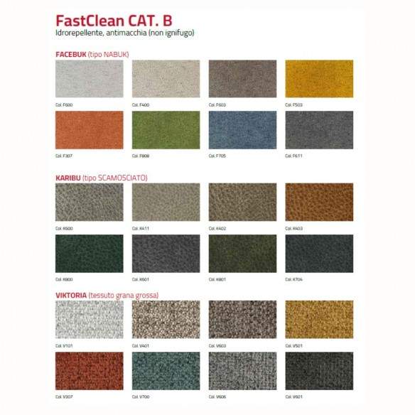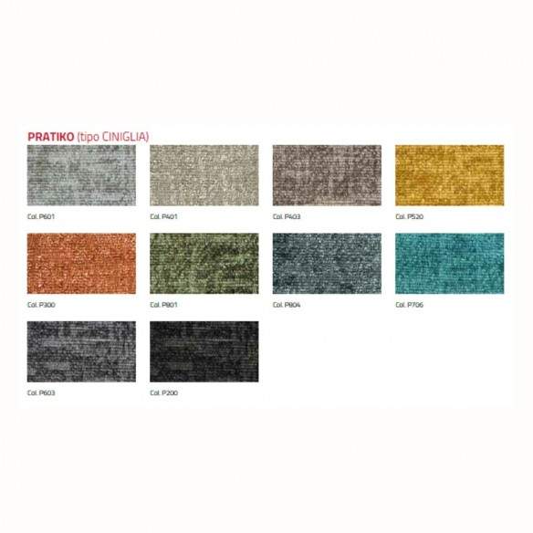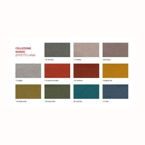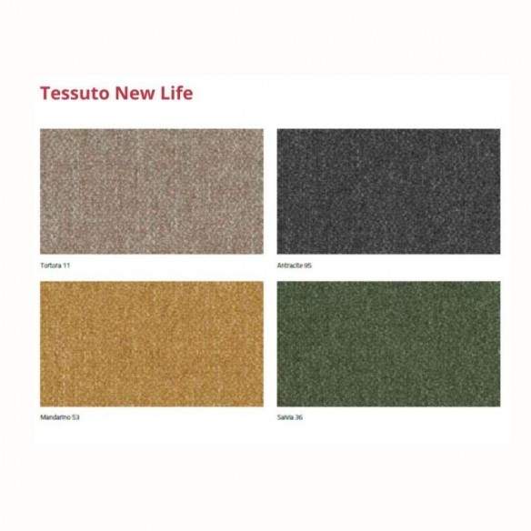 La seduta e lo schienale sono rivestiti in tessuto antimacchia New Life, un materiale innovativo ricavato da fibre riciclate, estremamente resistente all'usura, facile da pulire e pensato per un utilizzo quotidiano senza compromessi. Il tessuto, oltre ad essere eco-sostenibile, offre una piacevole sensazione al tatto e mantiene la sua bellezza anche dopo un uso intensivo.