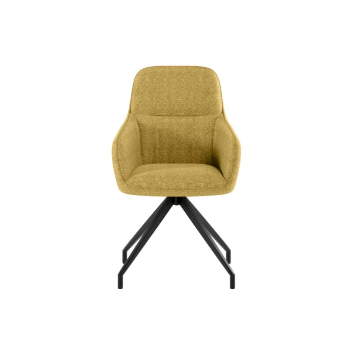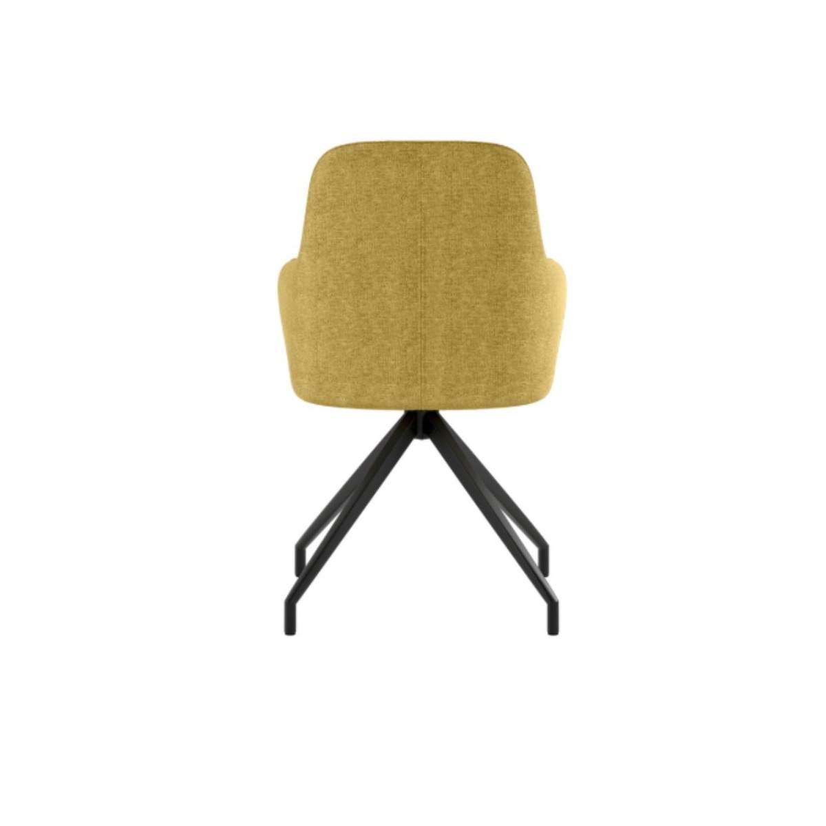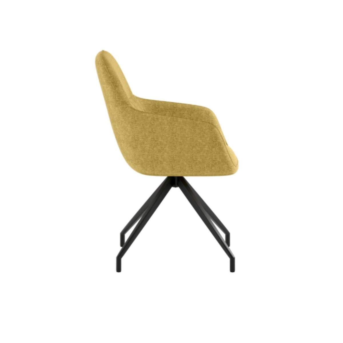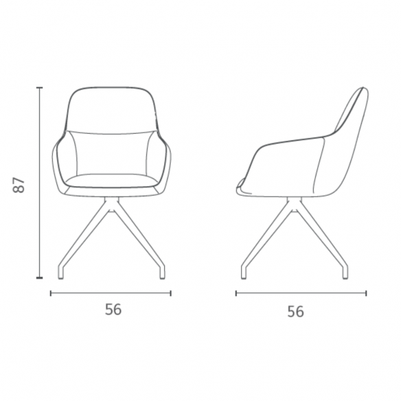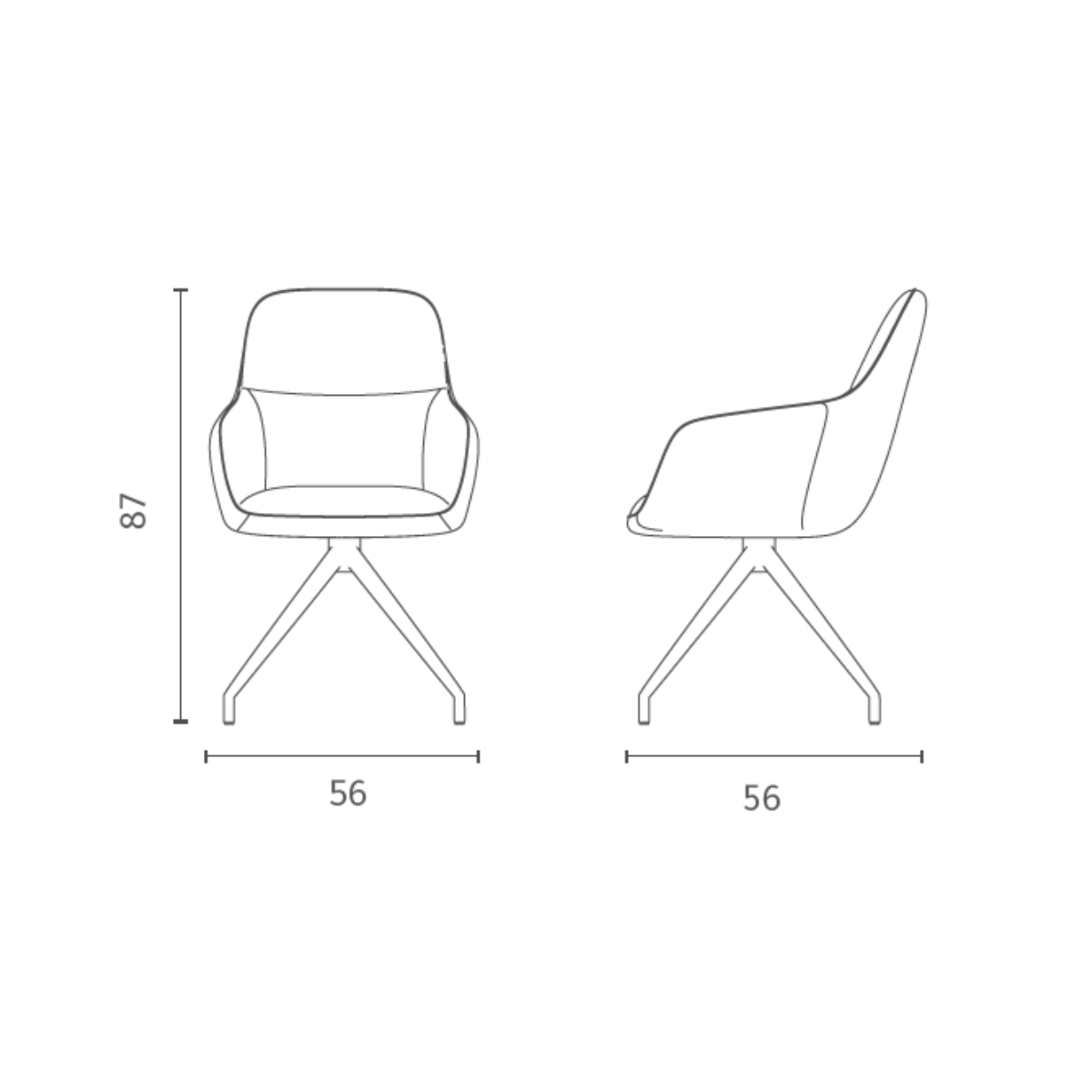 Questa sedia si distingue anche per la base girevole, perfetta per chi cerca praticità e dinamismo in un complemento d’arredo dal gusto moderno. Le cuciture a vista ne valorizzano il volume generoso, mettendo in risalto la morbidezza del rivestimento in tessuto e donando un aspetto sartoriale.