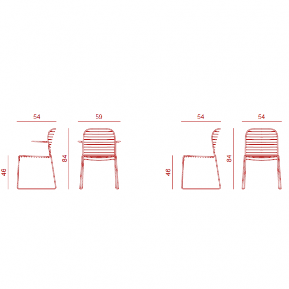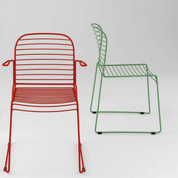 Sedia INFINITO con struttura a slitta e braccioli in metallo disponibile in diverse colorazioni.