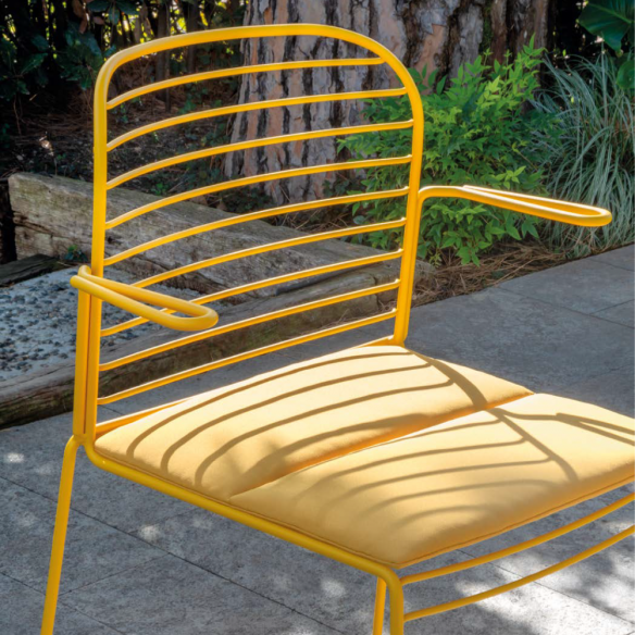 La sua ergonomia è impeccabile: sia con che senza cuscino, la sedia INFINITO con braccioli garantisce un comfort superiore, rimanendo sempre versatile e distinta grazie alla possibilità di scegliere tra numerosi tessuti e colori. Un pezzo unico, capace di adattarsi con eleganza a qualsiasi contesto, dall’outdoor al living indoor, offrendo sempre il perfetto equilibrio tra design e praticità.
