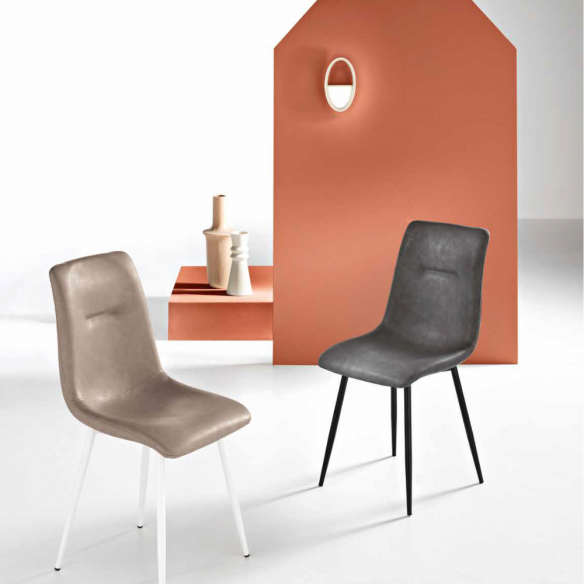 Sedia in ecopelle con imbottitura. Disponibile in due colori.