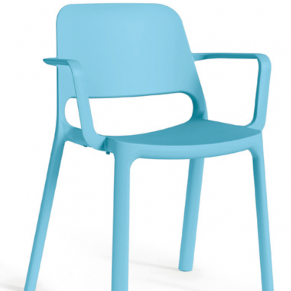 Sedia LIMA con braccioli interamente in polipropilene disponibile in diverse colorazioni.