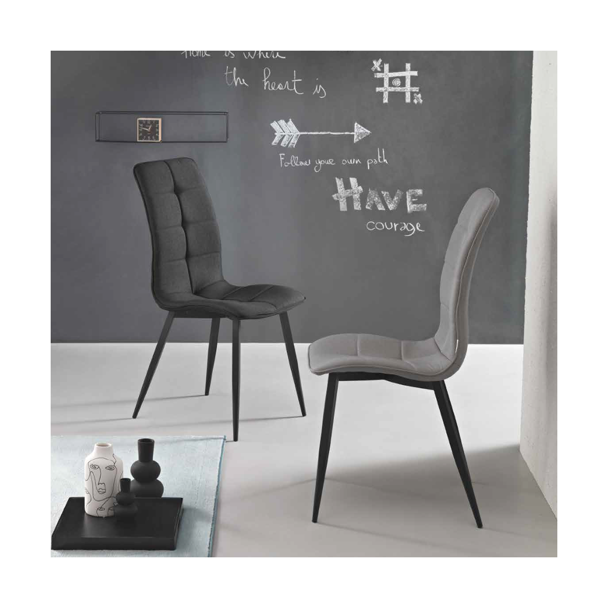 • Design moderno e sofisticato: Le linee pulite e il design impunturato della sedia Linfa aggiungono un tocco di modernità e classe a qualsiasi ambiente. La combinazione del tessuto e del metallo verniciato nero crea un look contemporaneo e chic.