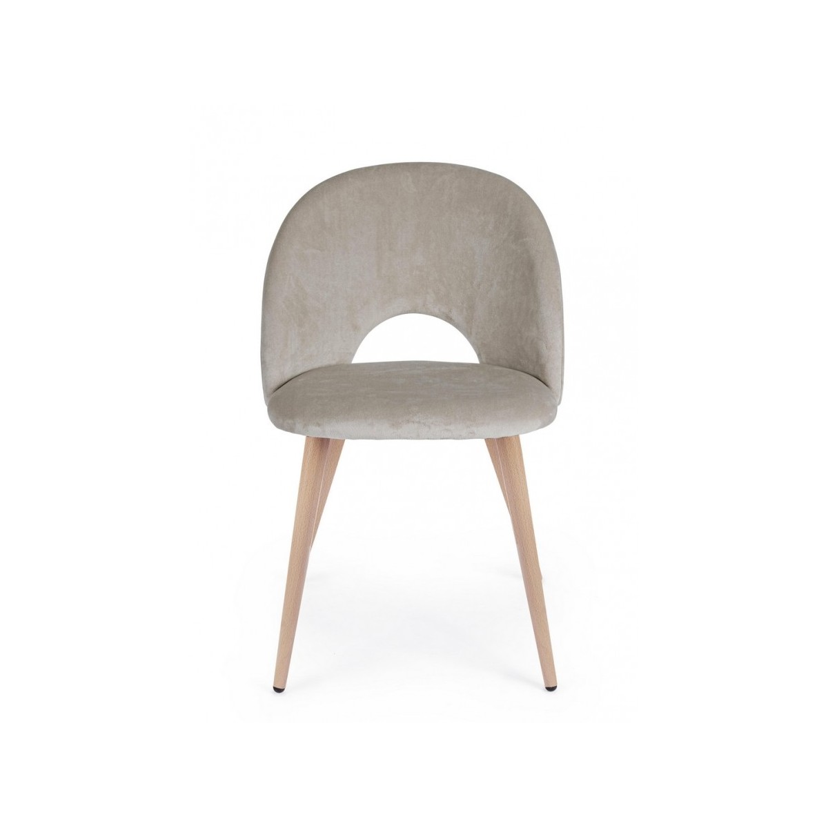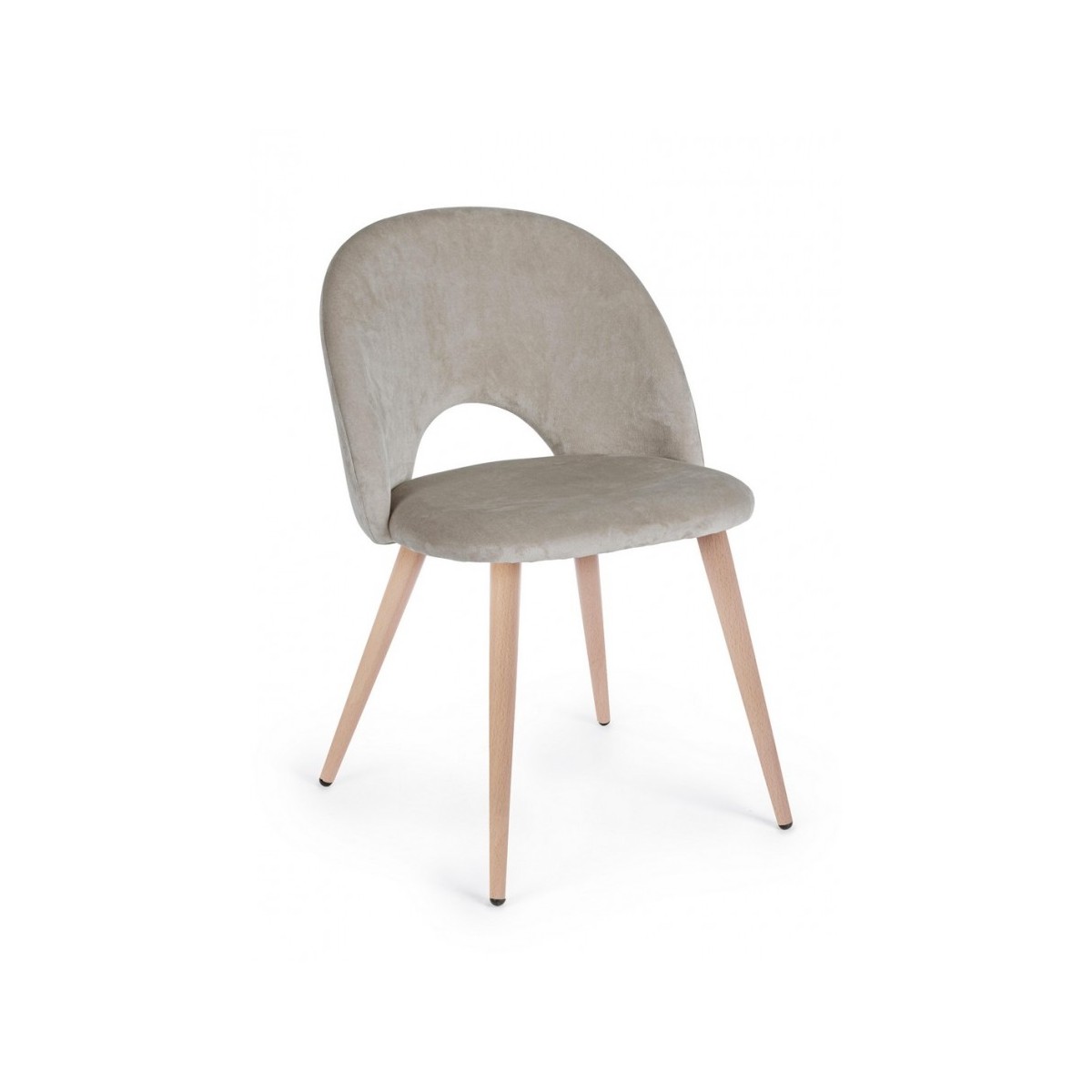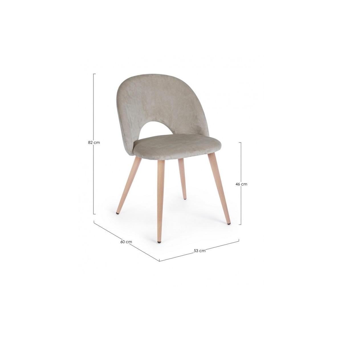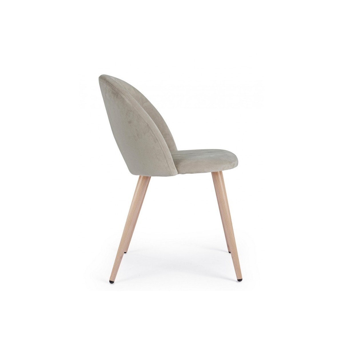 GAMBE IN ACCIAIO VERNICIATE EFFETTO LEGNO NATURALE. STRUTTURA IN COMPENSATO. IMBOTTITURA IN SCHIUMA POLIURETANICA. RIVESTIMENTO IN VELLUTO (100% POLIESTERE). GAMBE DA ASSEMBLARE.
