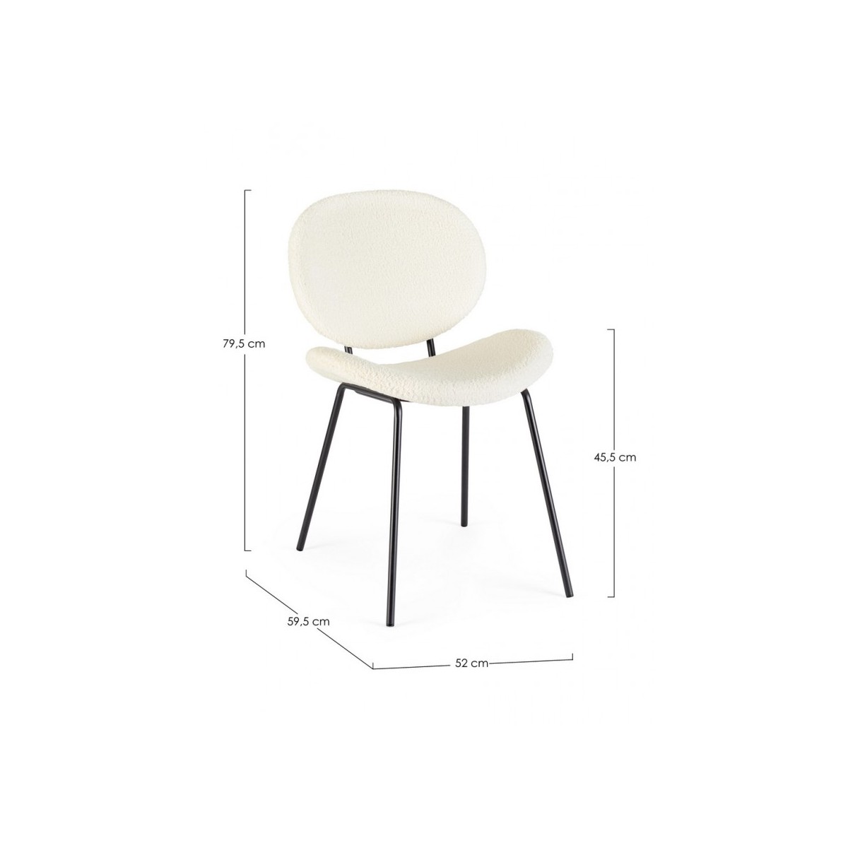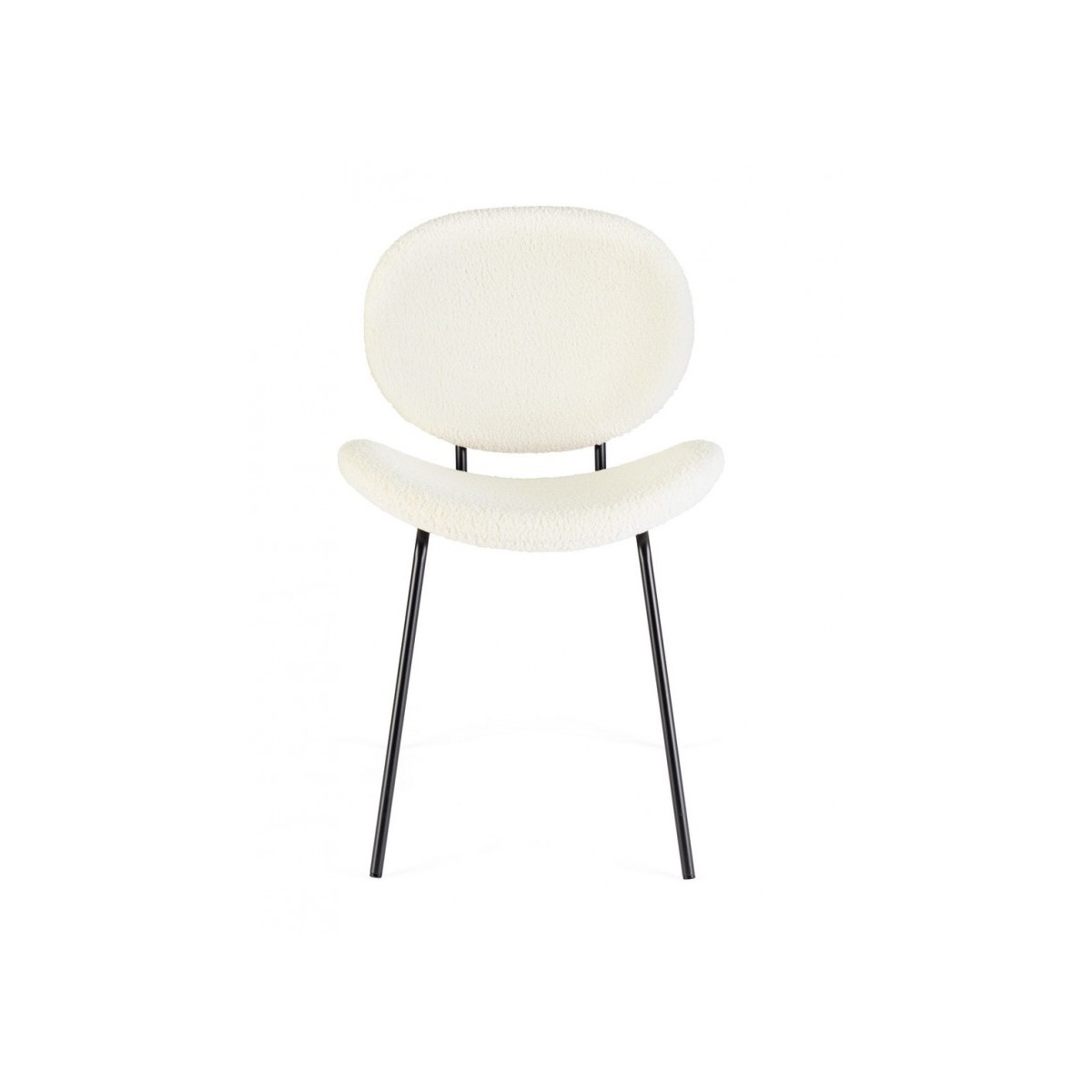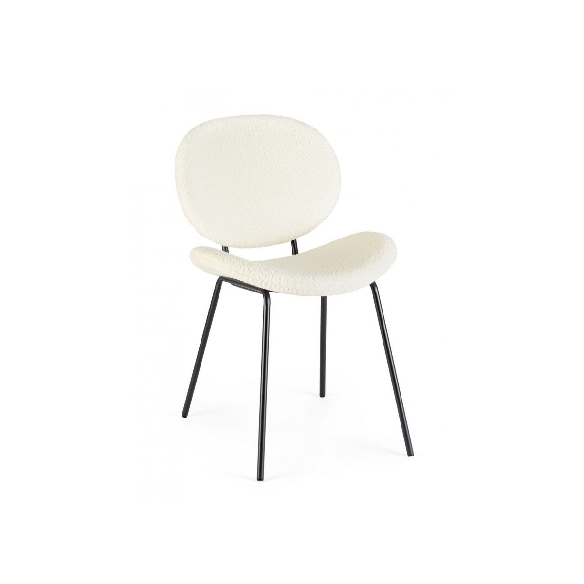 STRUTTURA IN ACCIAIO VERNICIATO A POLVERE EPOSSIDICA. SEDUTA E SCHIENALE IN POLIESTERE EFFETTO BOUCLE'. GAMBE DA ASSEMBLARE.