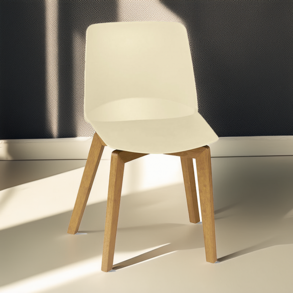 Sedia MADISON con struttura in legno massello e seduta in polipropilene.