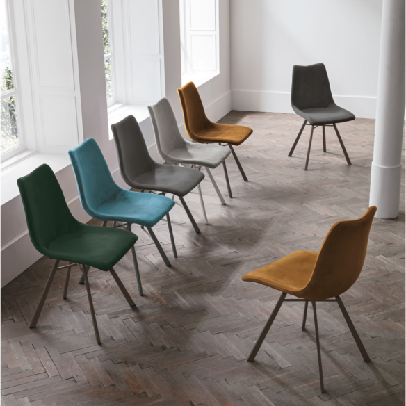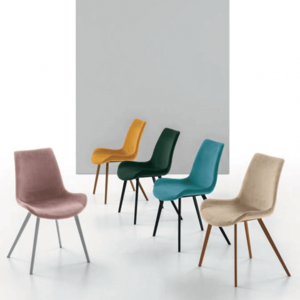 Sedia MAIORCA con struttura in metallo e seduta in morbida microfibra o soft touch.