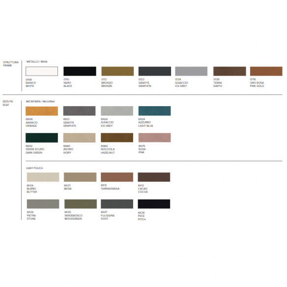 La seduta, realizzata con materiali di alta qualità, è disponibile in due varianti: la morbida microfibra effetto velluto, che regala una sensazione calda e avvolgente, oppure il pratico e sofisticato rivestimento Easy-Touch, perfetto per chi cerca un'estetica ricercata e una superficie facile da mantenere nel tempo.