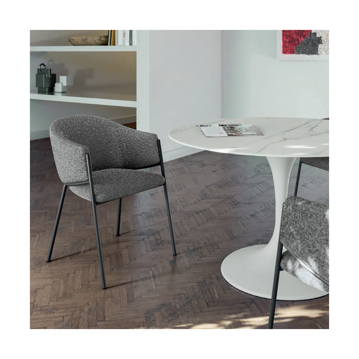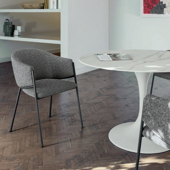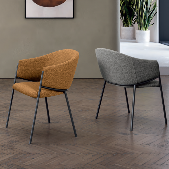 Disponibile in quattro colorazioni differenti, MEDEA si adatta facilmente a diversi stili d’interni: dalle zone giorno dal gusto nordico a sale da pranzo moderne e luminose. Il suo profilo curato e la silhouette avvolgente la rendono ideale per creare un angolo conviviale, sofisticato e contemporaneo.
