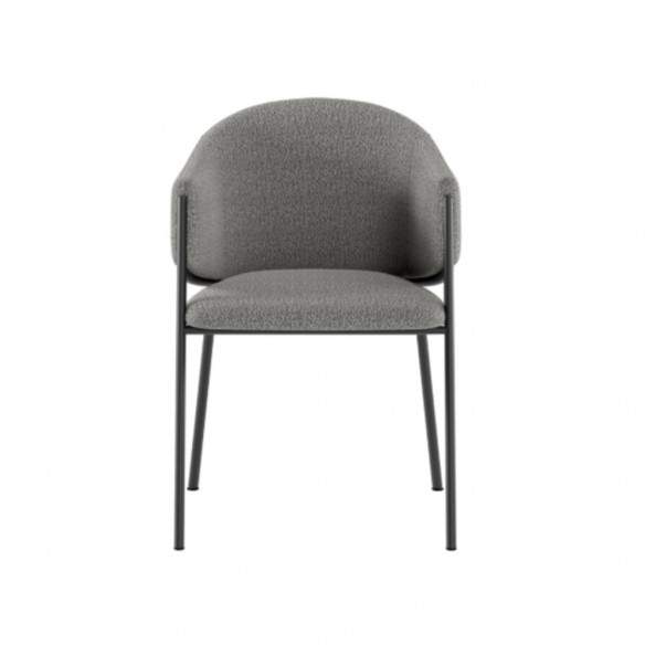 Sedia MEDEA di Stones con struttura in metallo verniciato antracite e seduta in tessuto bouclè Easy-clean.