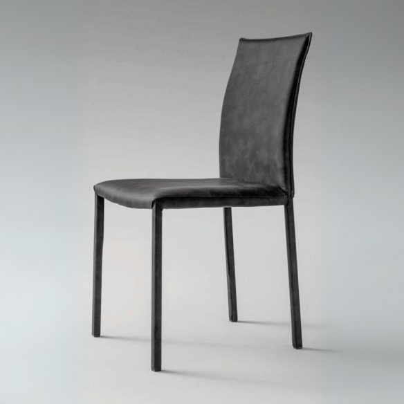 Sedia MIAMI con gambe rivestite o verniciate e seduta in ecopelle o tessuto.