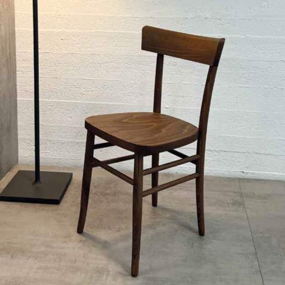 Sedia MILANO con struttura in faggio tinto noce con seduta e schienale in massello multistrato.