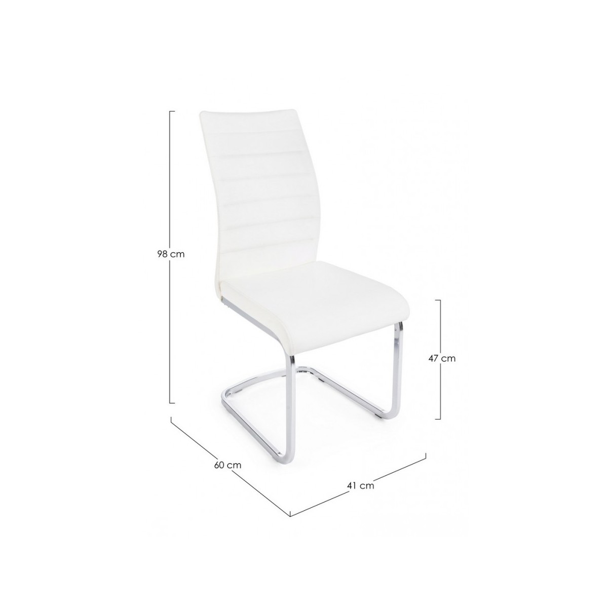STRUTTURA SEDUTA E SCHIENALE IN COMPENSATO. GAMBE IN TUBOLARE DI ACCIAIO CROMATE. IMBOTTITURA IN SCHIUMA POLIURETANICA E RIVESTIMENTO IN SIMILPELLE. DA ASSEMBLARE.