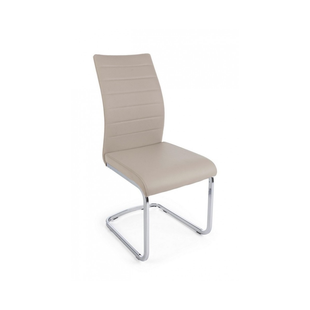 STRUTTURA SEDUTA E SCHIENALE IN COMPENSATO. GAMBE IN TUBOLARE DI ACCIAIO CROMATE. IMBOTTITURA IN SCHIUMA POLIURETANICA E RIVESTIMENTO IN SIMILPELLE. DA ASSEMBLARE.