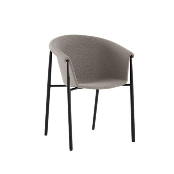 Sedia NARI con struttura in metallo verniciato nero e seduta in tessuto.