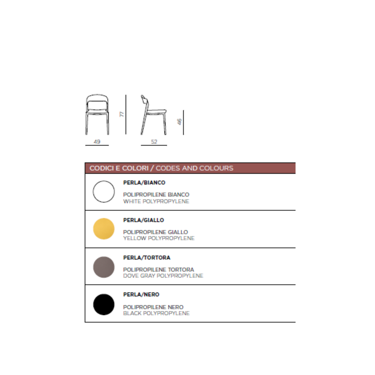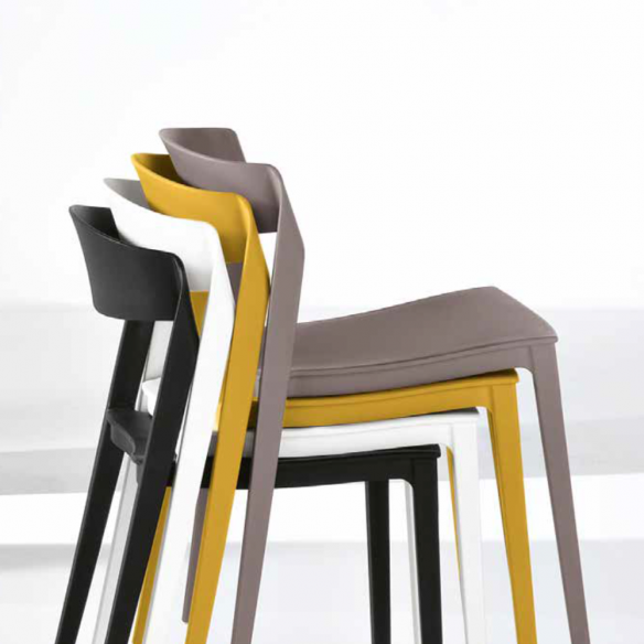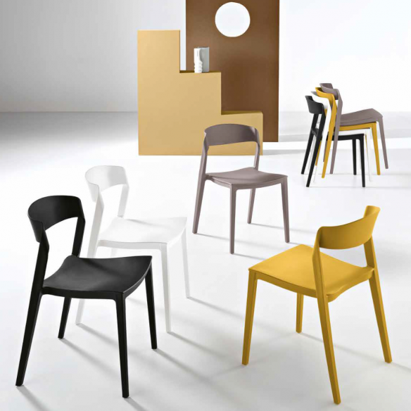 Sedia in polipropilene impilabile. Disponibile in diversi colori.
