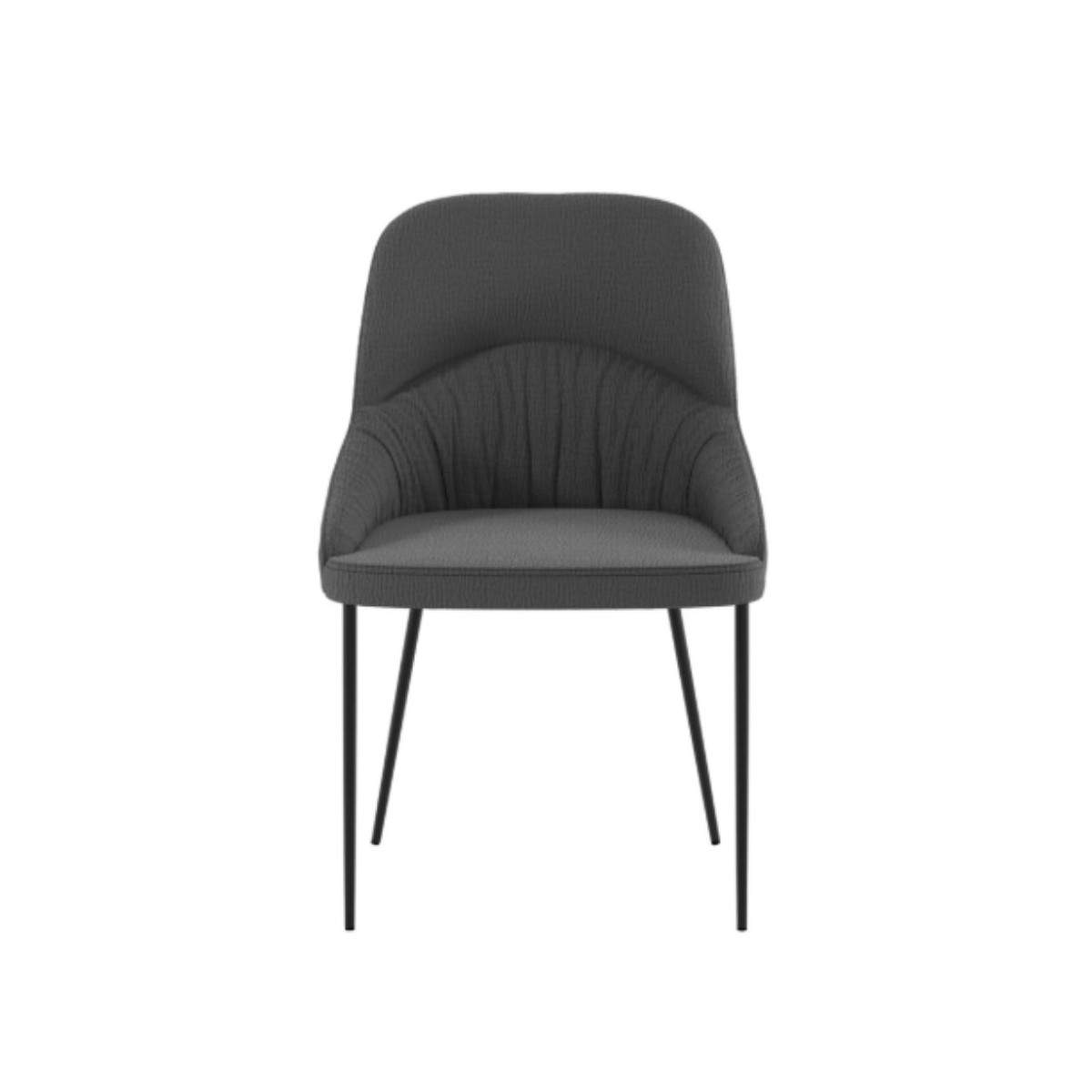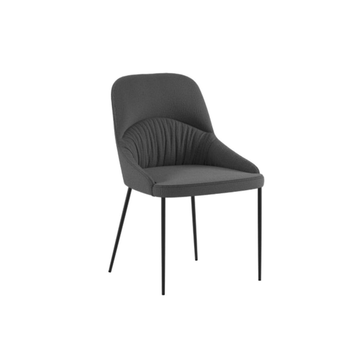 Il profilo moderno e leggermente curvato dello schienale rende questa sedia visivamente leggera, ma al tempo stesso accogliente, adatta sia a una zona pranzo contemporanea che a uno studio dal gusto essenziale. La finitura opaca del metallo si sposa armoniosamente con la texture morbida del tessuto, creando un contrasto piacevole che valorizza ogni angolo della casa. POCATELLO è la sedia che accompagna i tuoi momenti di relax, senza complicazioni e con tanto stile.