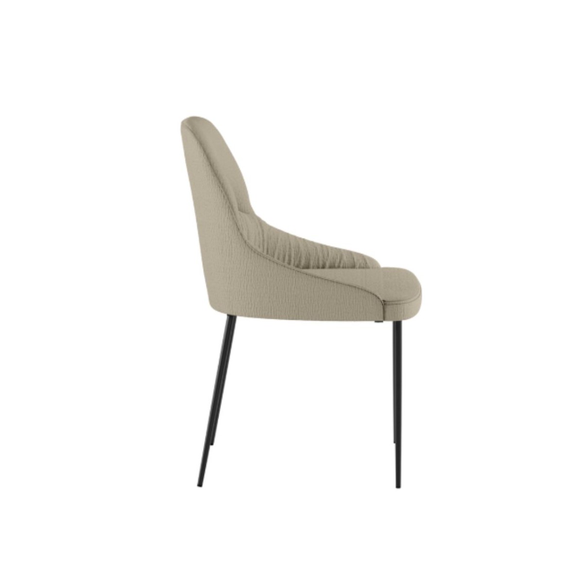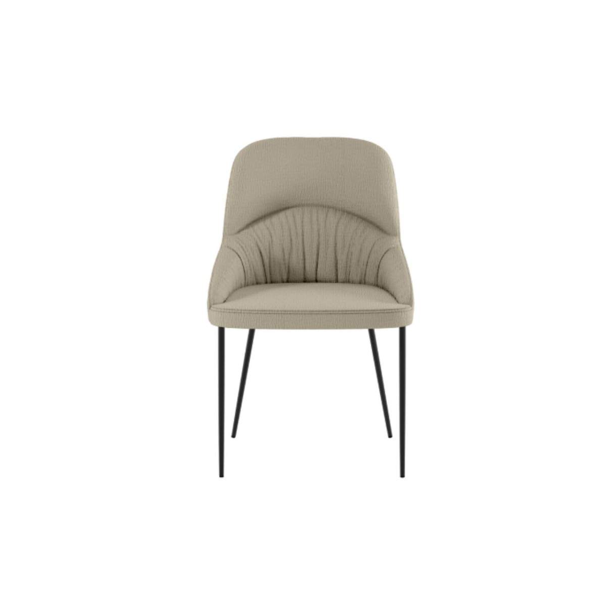 Il profilo moderno e leggermente curvato dello schienale rende questa sedia visivamente leggera, ma al tempo stesso accogliente, adatta sia a una zona pranzo contemporanea che a uno studio dal gusto essenziale. La finitura opaca del metallo si sposa armoniosamente con la texture morbida del tessuto, creando un contrasto piacevole che valorizza ogni angolo della casa. POCATELLO è la sedia che accompagna i tuoi momenti di relax, senza complicazioni e con tanto stile.