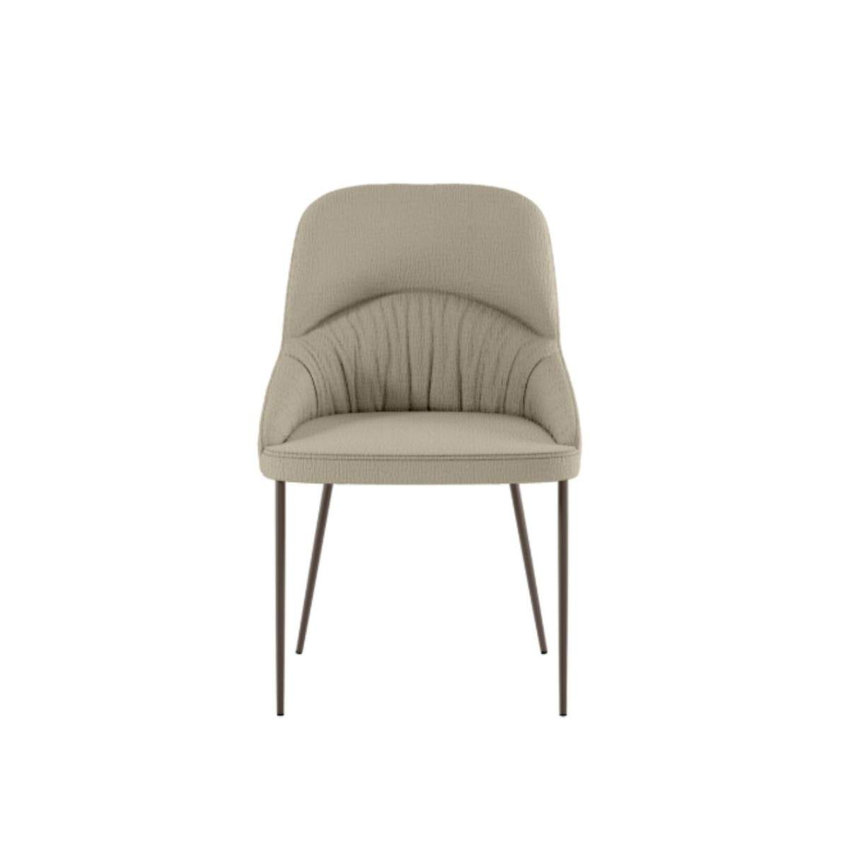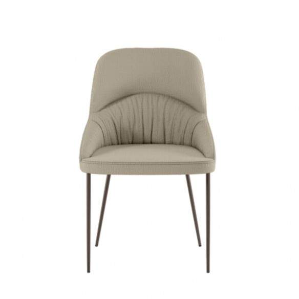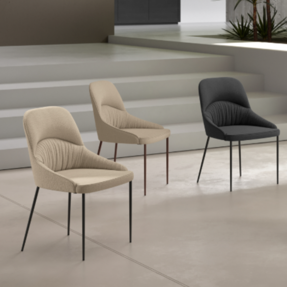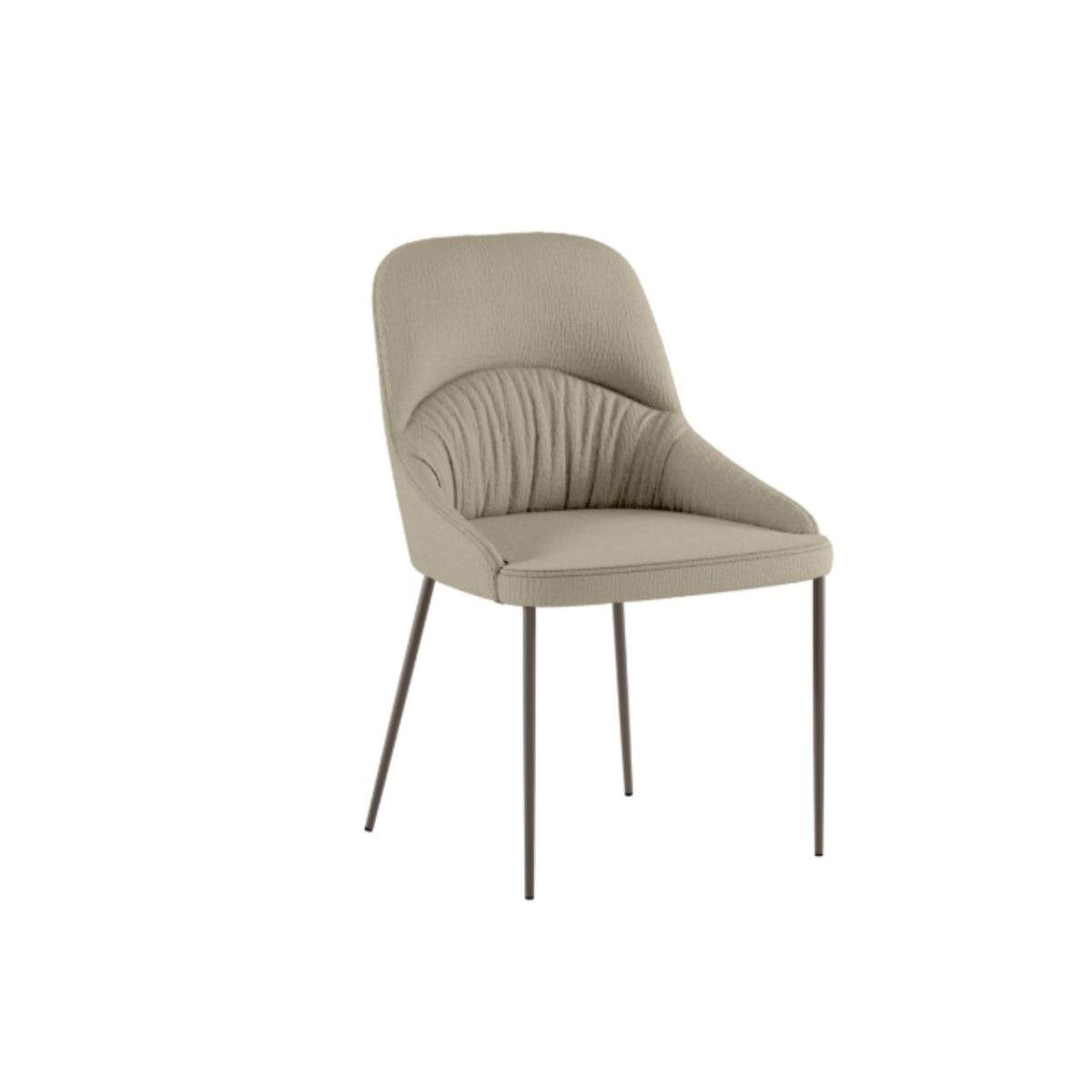 Il profilo moderno e leggermente curvato dello schienale rende questa sedia visivamente leggera, ma al tempo stesso accogliente, adatta sia a una zona pranzo contemporanea che a uno studio dal gusto essenziale. La finitura opaca del metallo si sposa armoniosamente con la texture morbida del tessuto, creando un contrasto piacevole che valorizza ogni angolo della casa. POCATELLO è la sedia che accompagna i tuoi momenti di relax, senza complicazioni e con tanto stile.