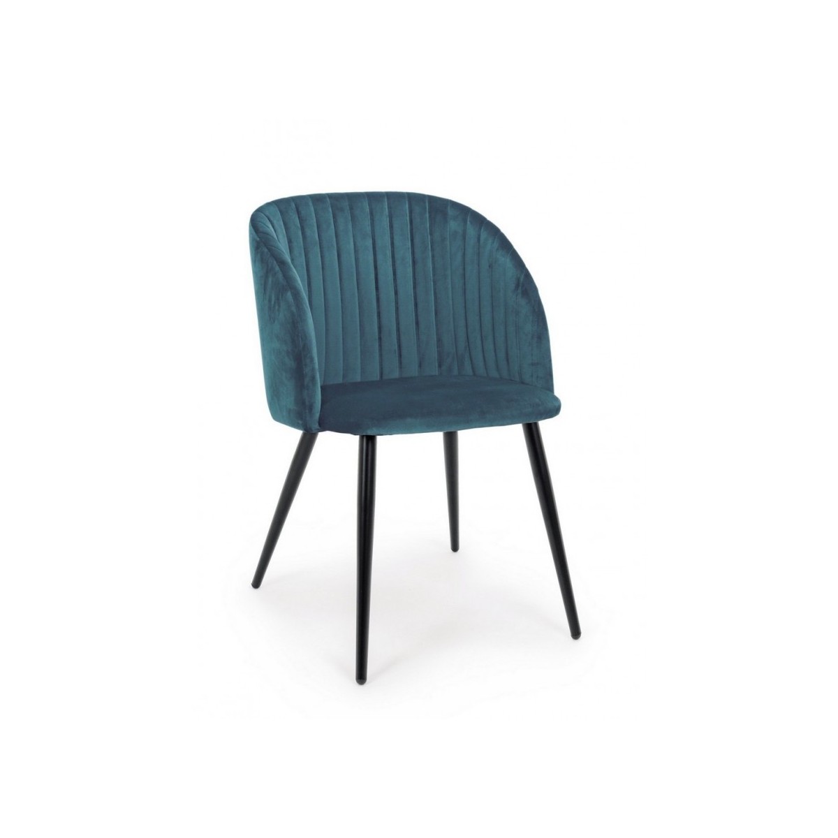 STRUTTURA IN COMPENSATO. GAMBE IN ACCIAIO VERNICIATO A POLVERE. IMBOTTITURA IN SCHIUMA POLIURETANICA DENSITA' 22 KG/M3. RIVESTIMENTO IN VELLUTO POLIESTERE 100%. GAMBE DA ASSEMBLARE.