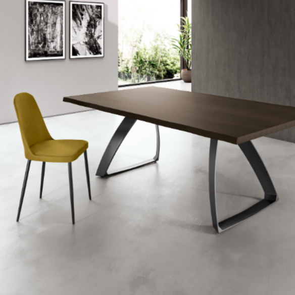 La struttura cambia in base al materiale scelto. Nelle versioni in tessuto e in soft touch, le gambe sono realizzate in metallo verniciato, resistenti e curate nei dettagli, perfette per un uso quotidiano e intensivo. Nella variante in polipropilene, invece, la struttura è interamente in tinta: seduta e gambe sono dello stesso materiale e colore, per un effetto monoblocco pulito e moderno.