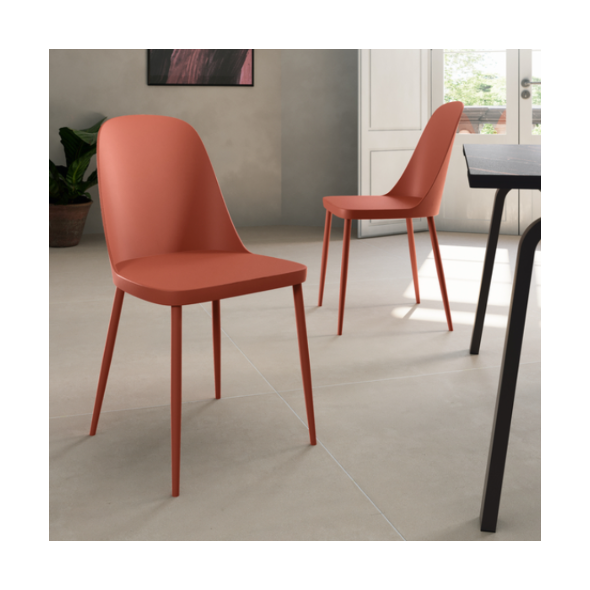 Sedia TAMARA con struttura in metallo verniciato o polipropilene e seduta in tessuto, soft-touch o polipropilene.